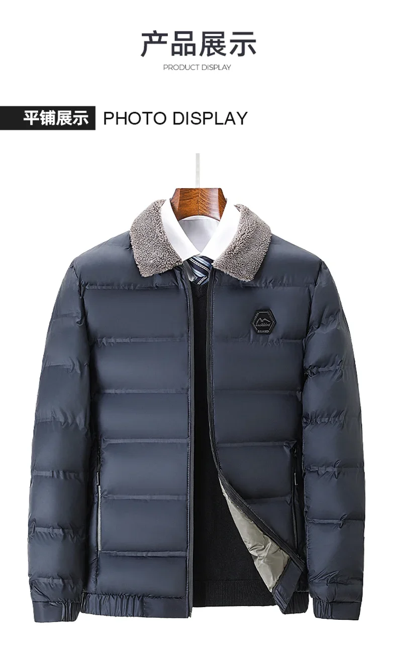 Winter Men Casual Parkas Solid Color Warm Thickened Jacket for Men Quality Turn-down Collar Male Overcoat 2024 Fashion All-match