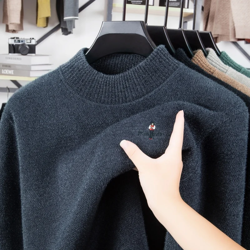 men's thicken autumn winter high-end sweater round neck embroidery knit keep warm pullover fashion best seller man clothes tops