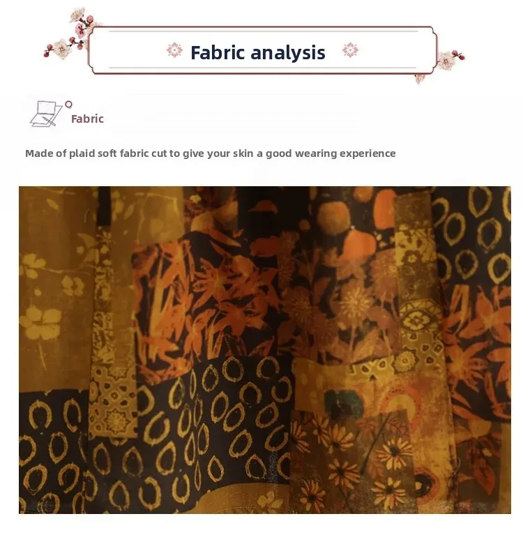 • Vintage Cotton and Linen Material : Crafted from a blend of vintage cotton and linen, this dress offers a comfortable and breathable wear for autumn.