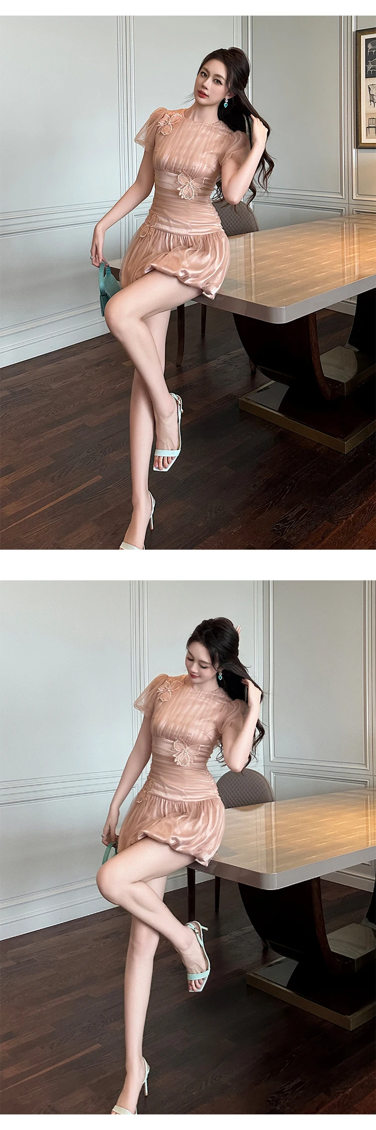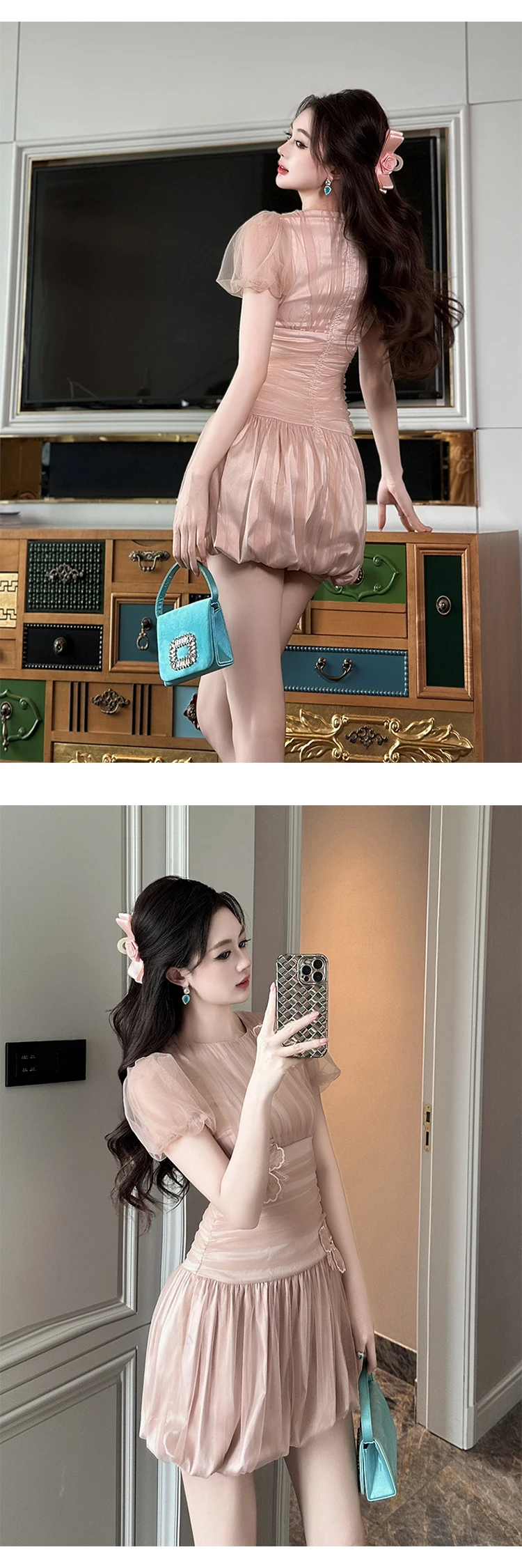Women Clothes Evening Sweet Pink Sexy Puff Sleeve Corset Mini Short Dress Elegant Lady Fashion Party Birthday Vestido Summer New