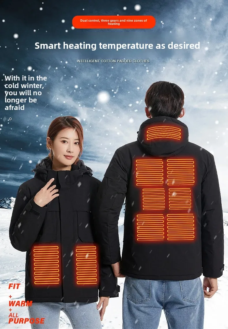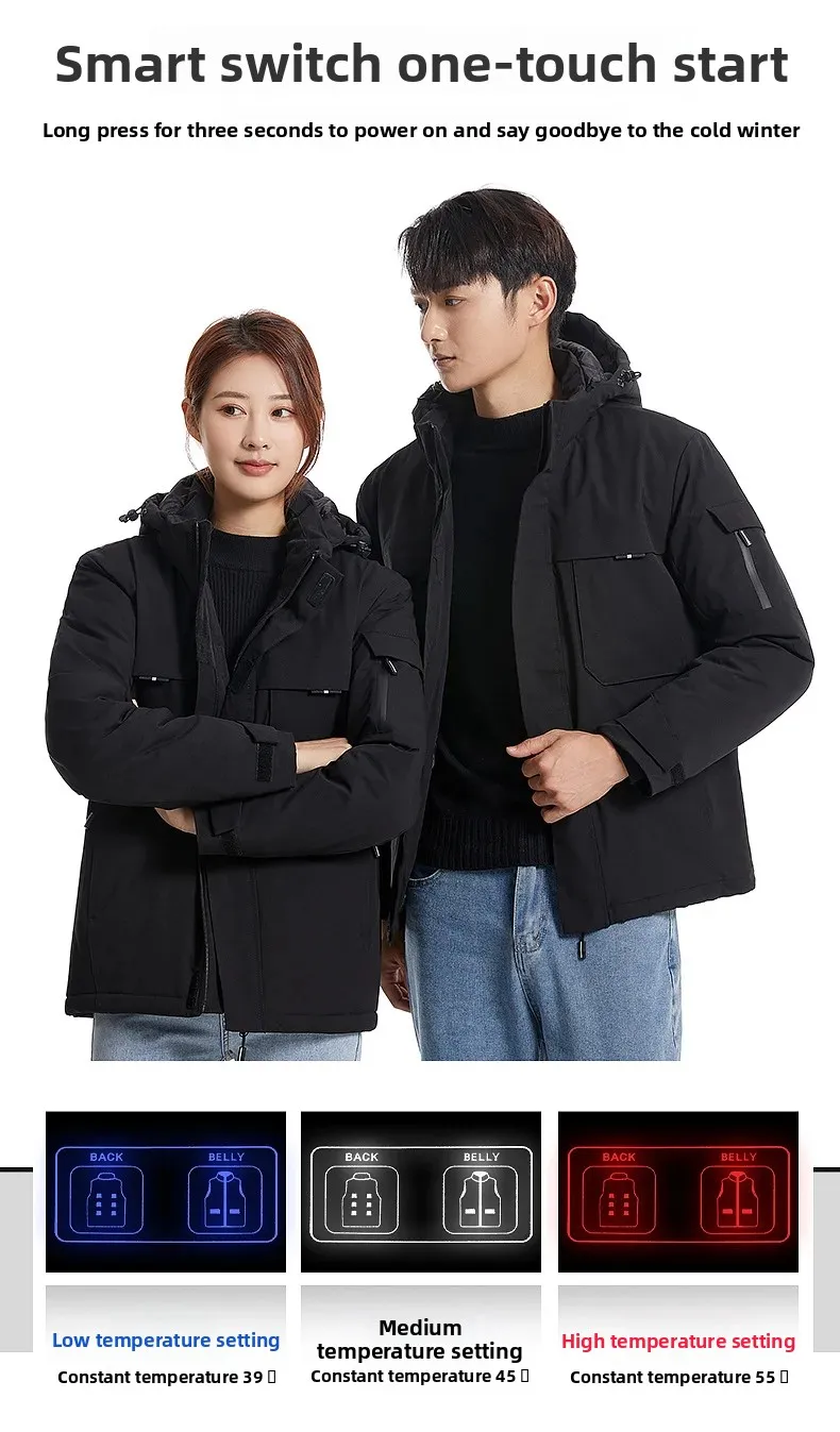 • Smart Heating Technology : Experience ultimate comfort with our smart heating cotton-padded jacket, designed to maintain a constant temperature using USB charging.