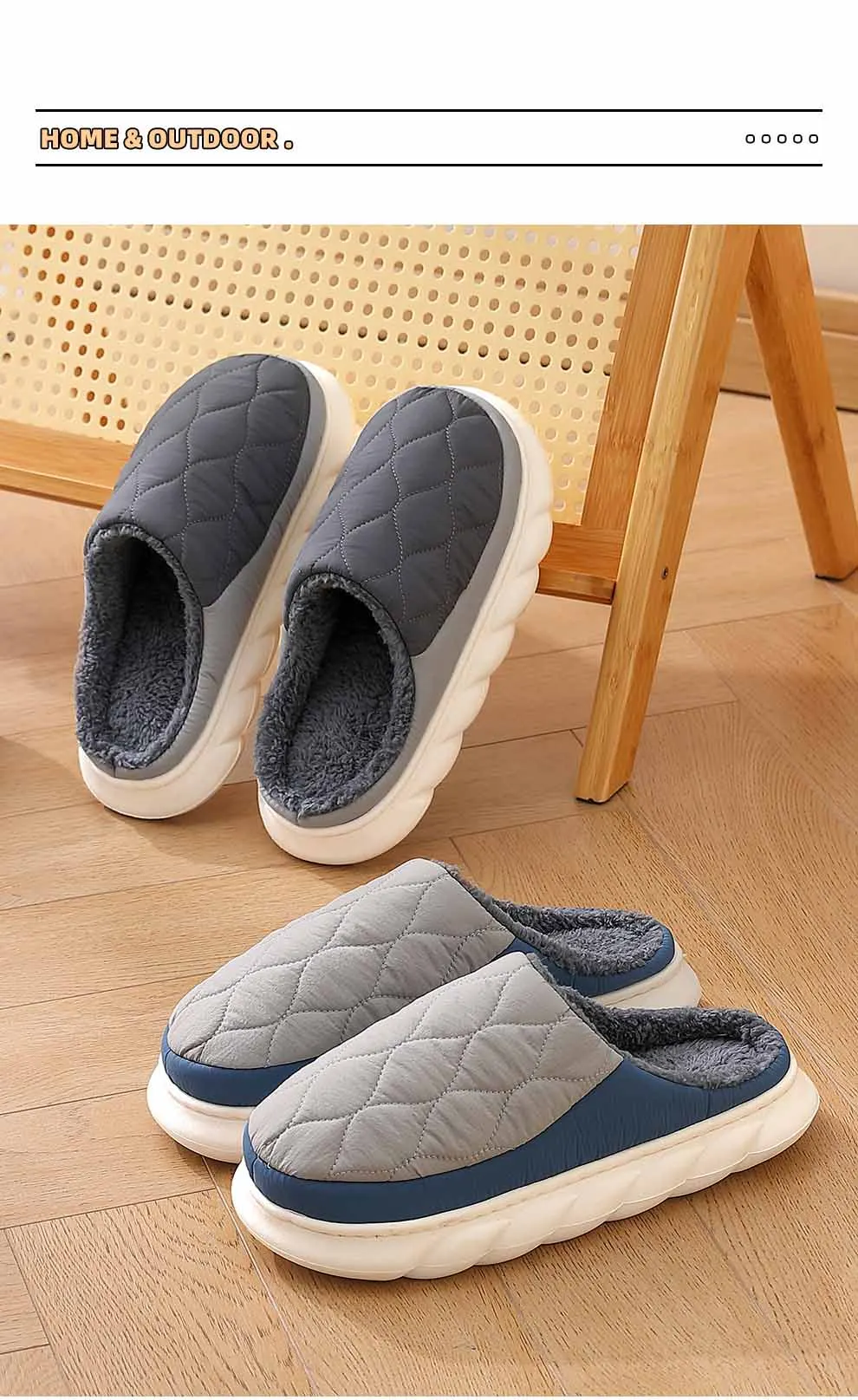 Eyriphy New Winter Warm Fur Plush Slippers Men Soft Cozy Outdoor Casual Shoes Waterproof Male Slides Thick Sole Cotton Slippers