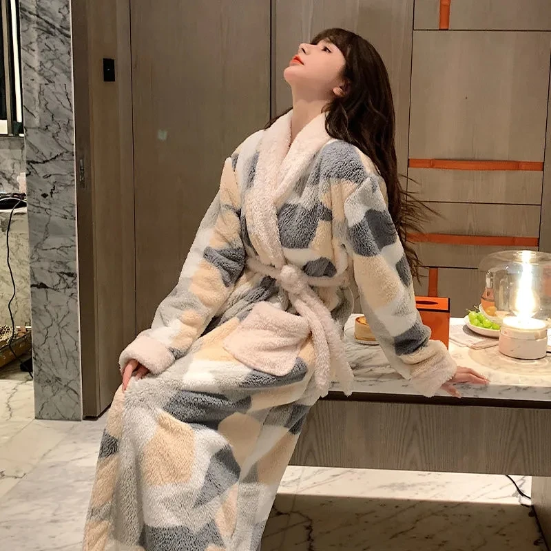 Women's Plush Velvet Bathrobe for Fall and Winter, Long or Extra-Long