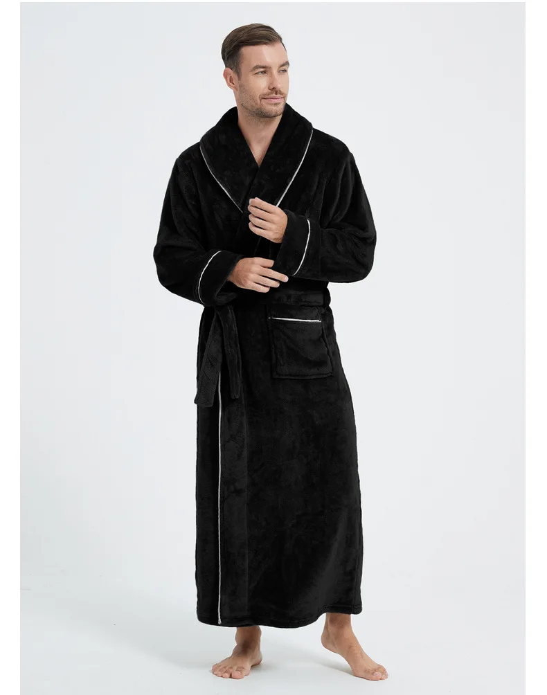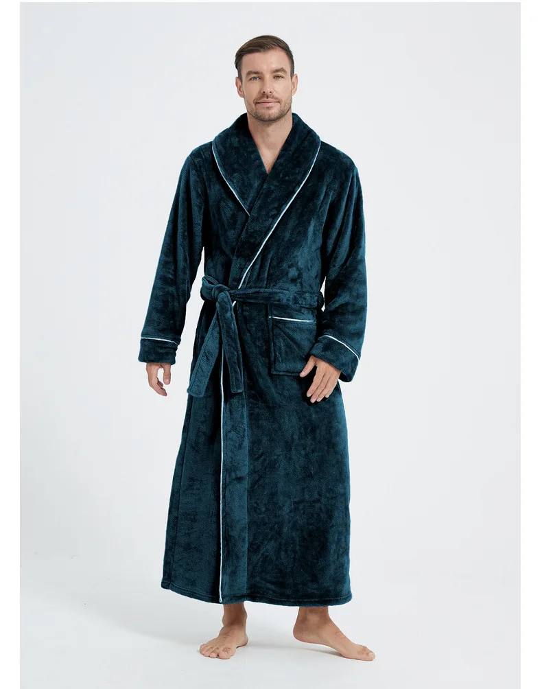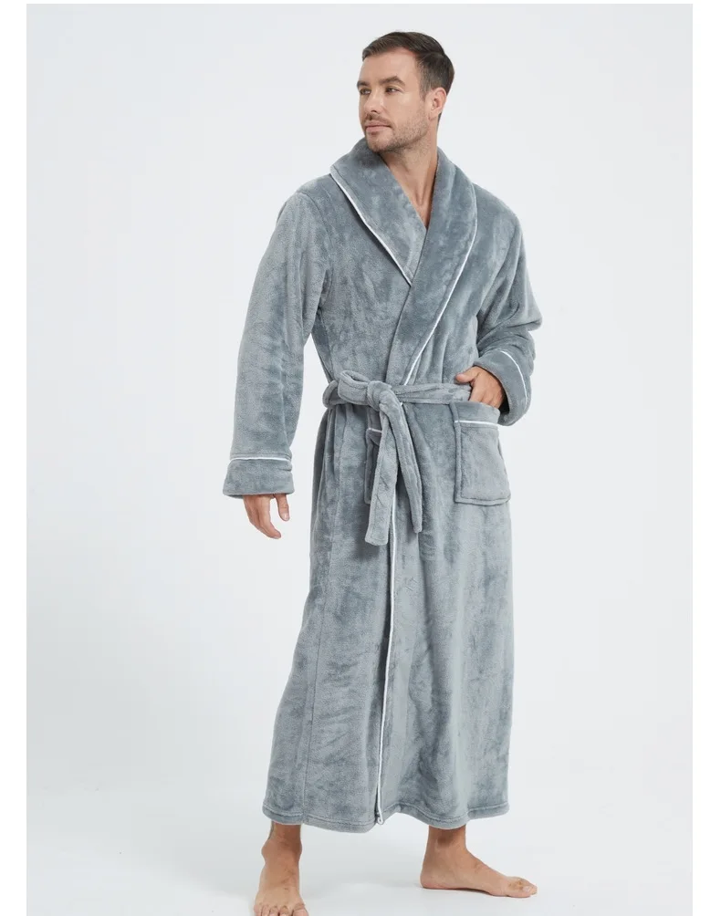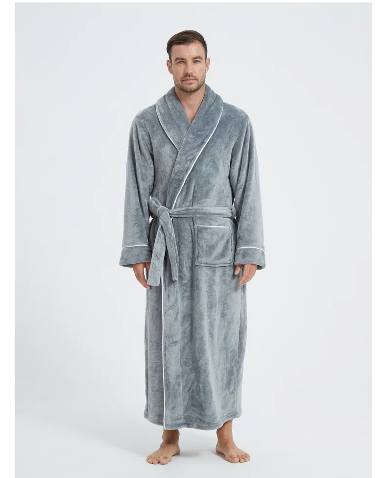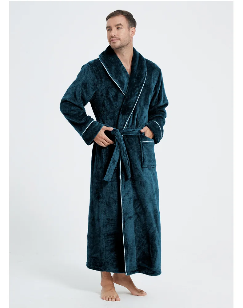 Men's Cozy Flannel Robe, Plush Coral Fleece, Warm Home Comfort