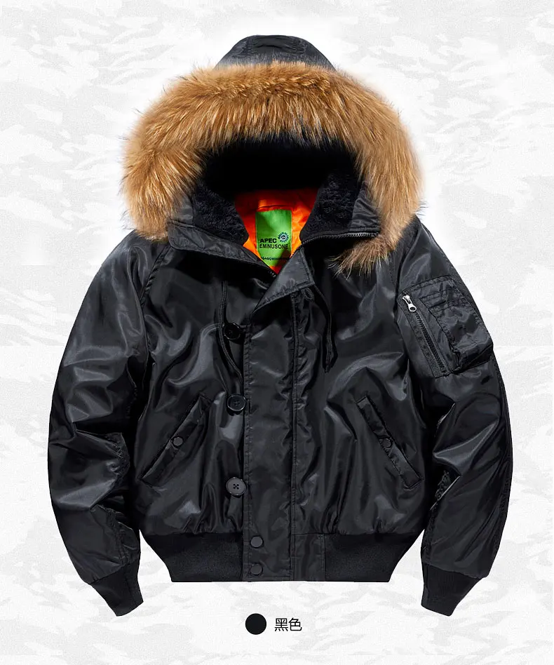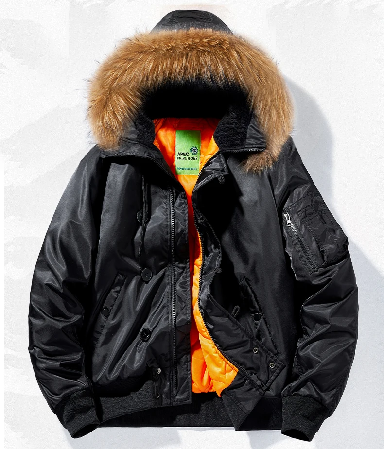 Talvine meeste piloodijakk karvase kraega soe sõjaväeline bomberjakk kapuutsiga parkas paks väljas tuulekindel kõrge kvaliteediga meeste riided