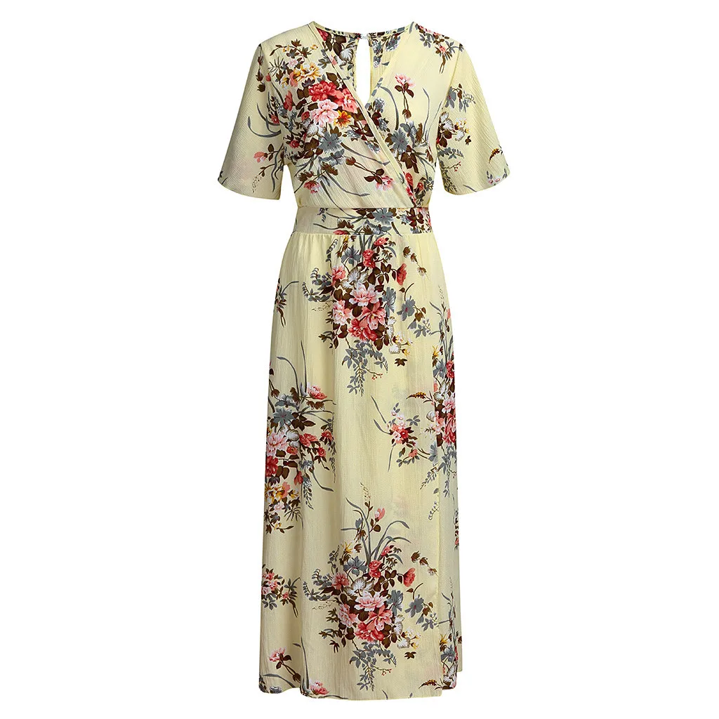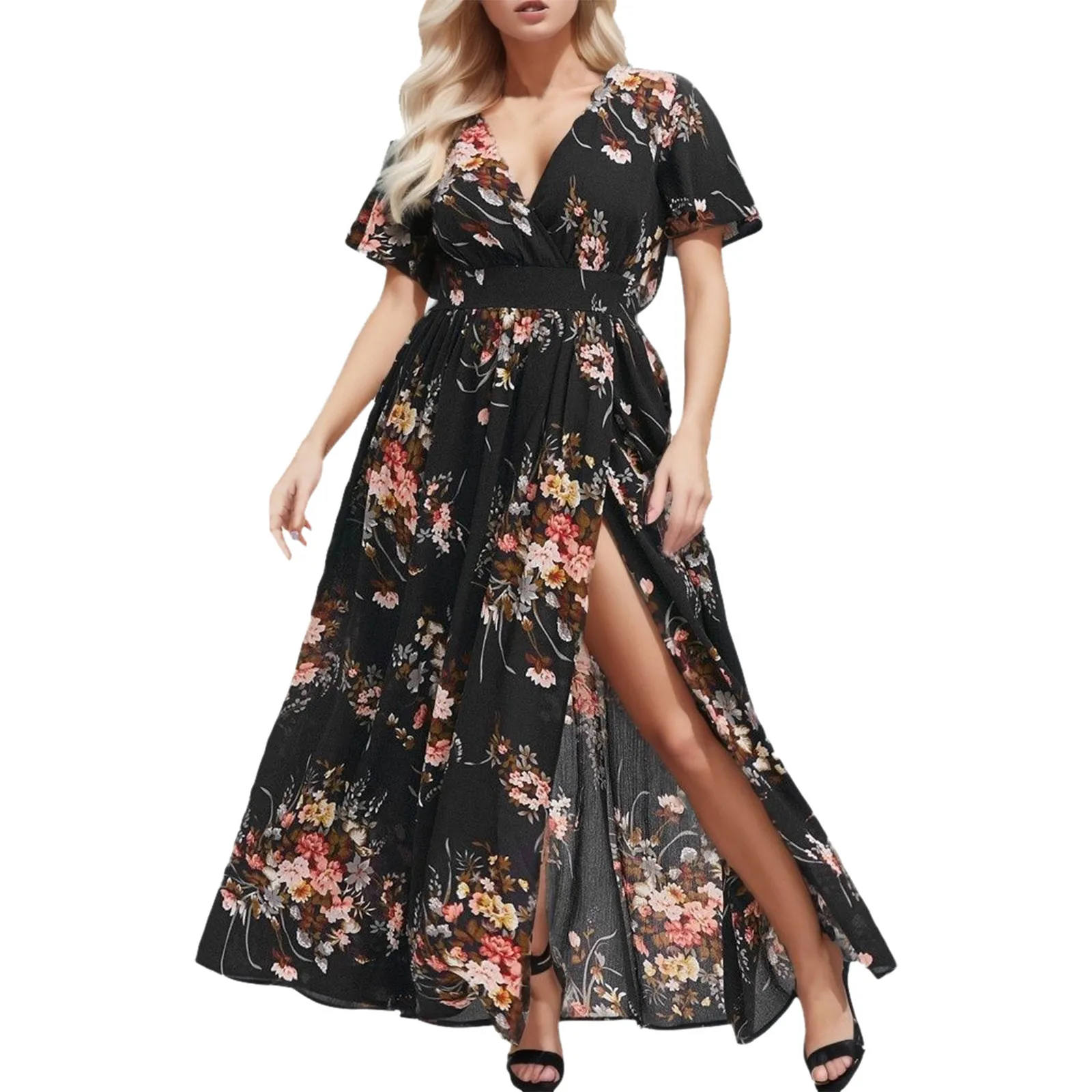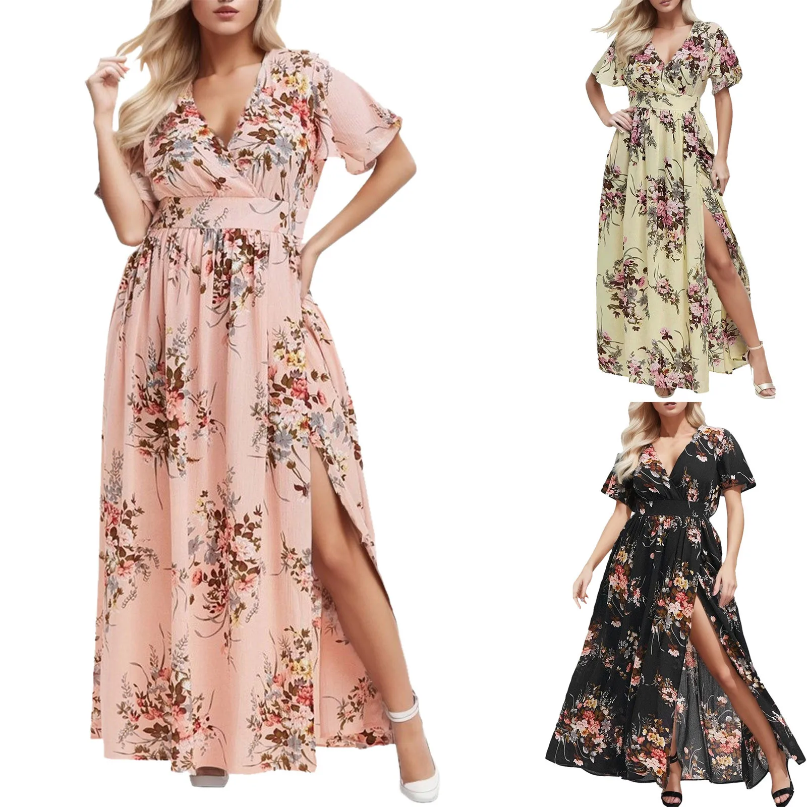 Plus Size Neck Party Short Sleeve Boho Print Women Floral Dress Dress V Women's Dress