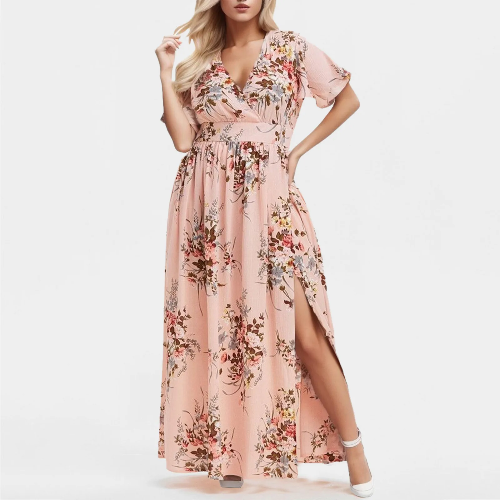 Women's Dress Plus Size Short Sleeve Boho Print Summer Women Floral Long Maxi Dresses A Line High Waist Loose Sundress Beachwear