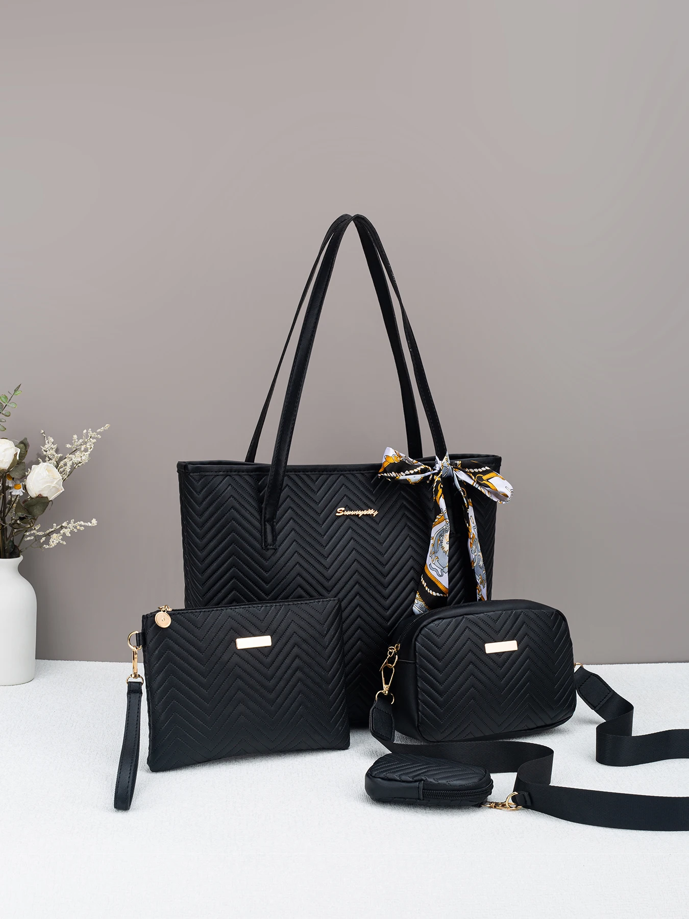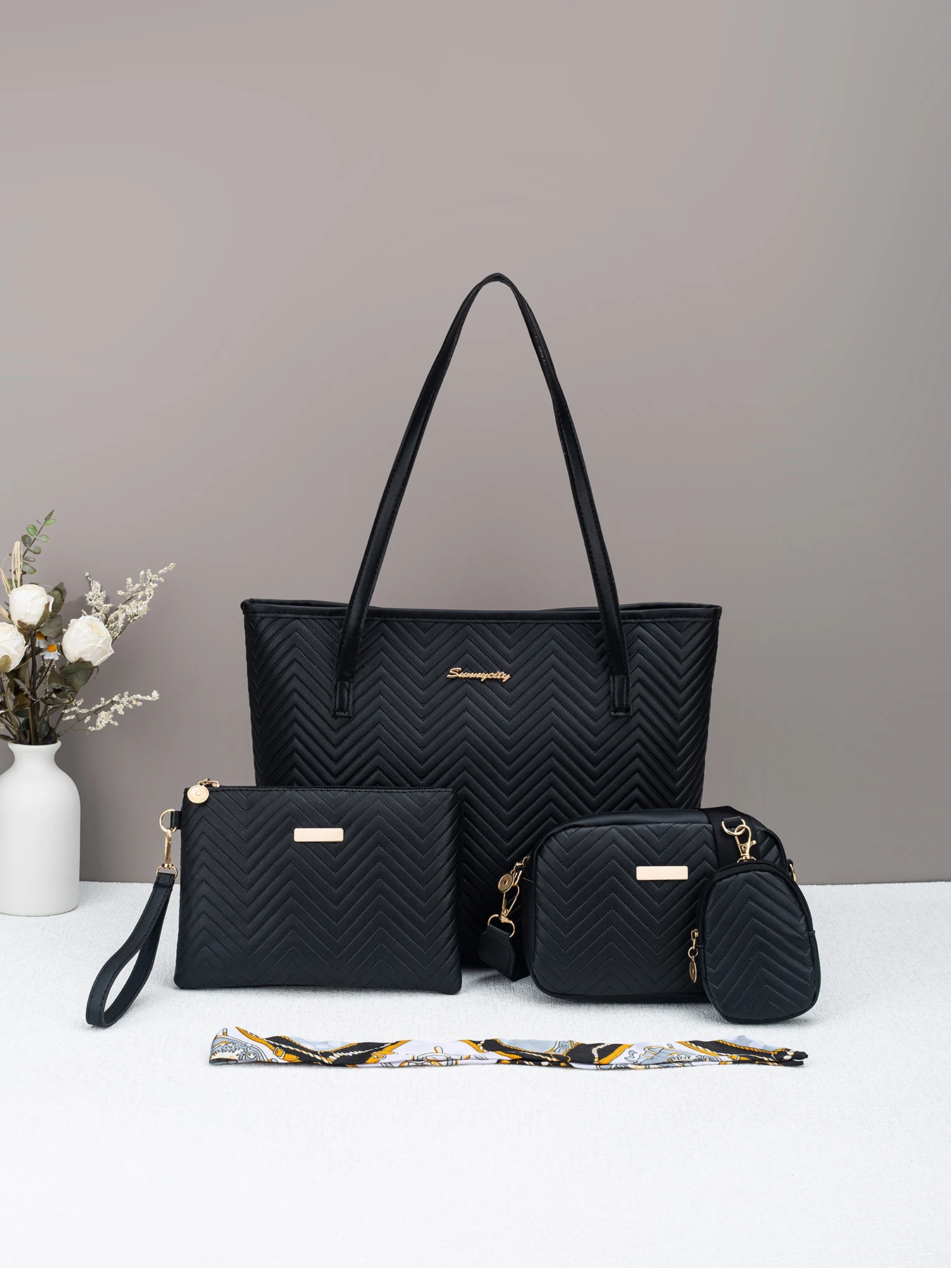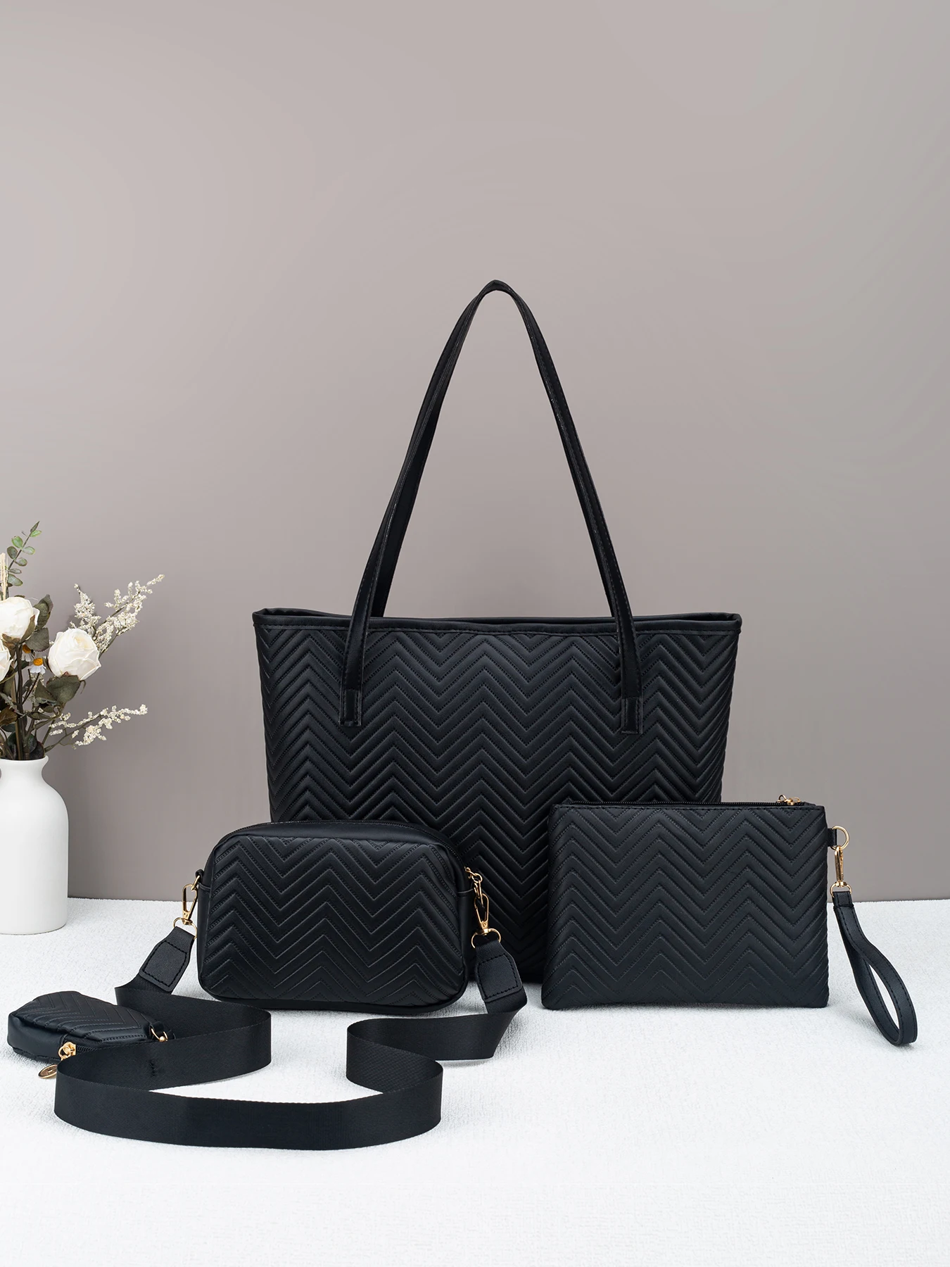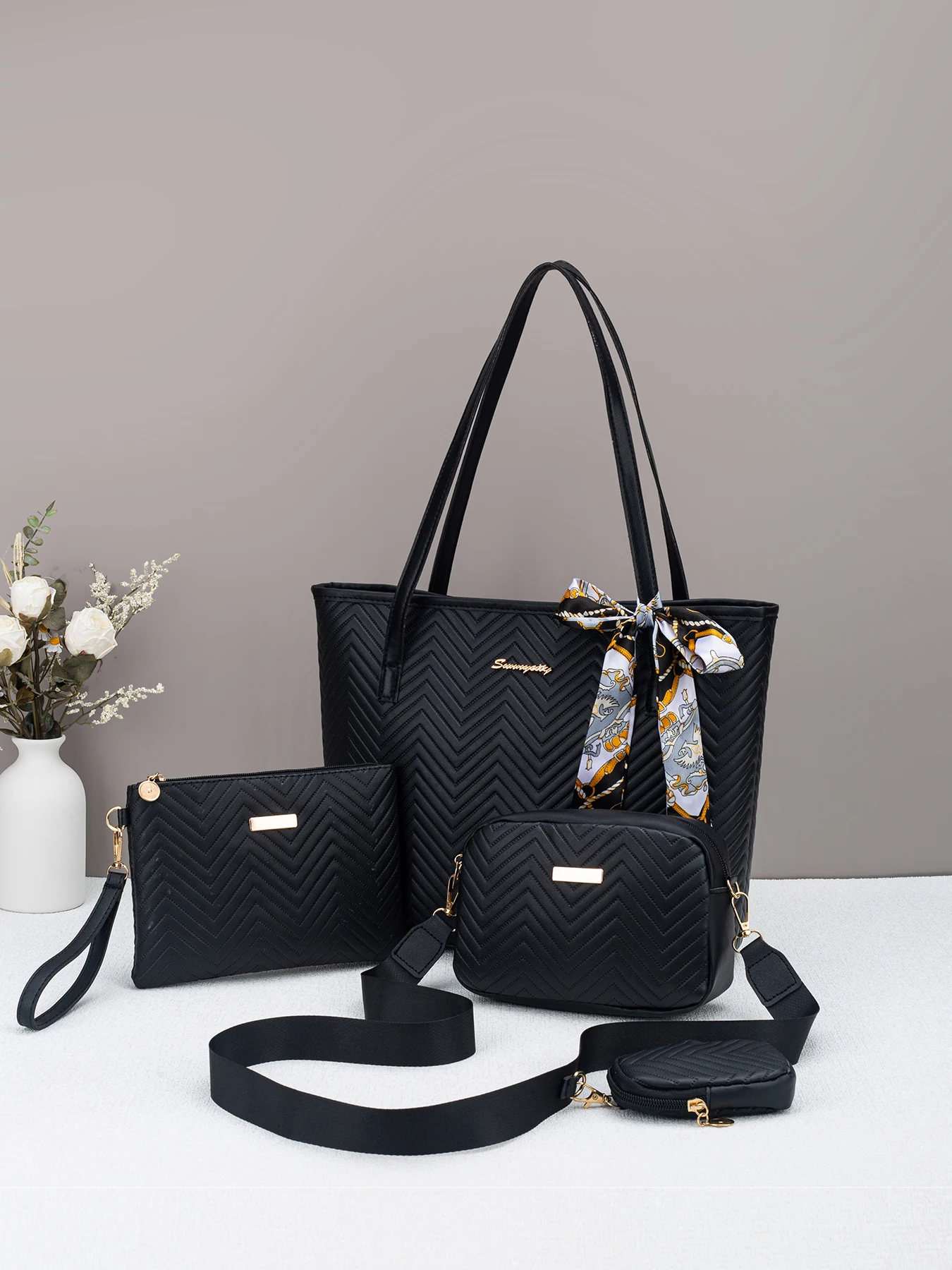 Wave pattern daily commuting large capacity tote bag handbag four piece set fashion trend personality change camera bag