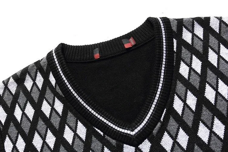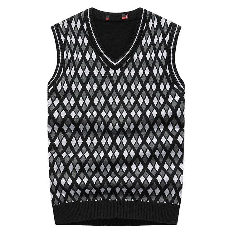 Knitted Sweaters for Men Sleeveless Vest Man Clothes Plaid Business V Neck Waistcoat Tops Y2k Vintage X High Quality Replica Fun