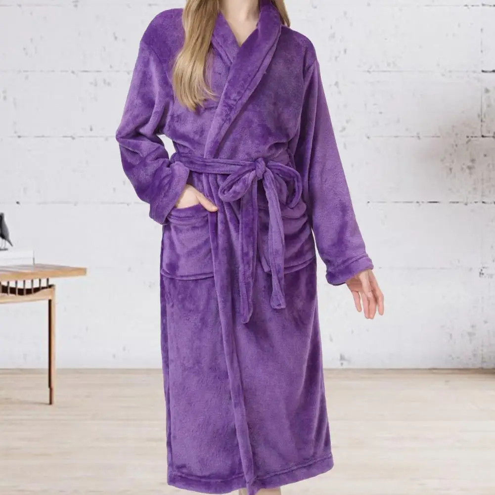 Indulge in luxurious comfort with our fleece bathrobe. Crafted from the softest flannel fabric, this bathrobe is designed to keep you cozy and warm on chilly nights. Its simple solid color and casual style make it a versatile choice for daily wear, suitable for all body types and ages.