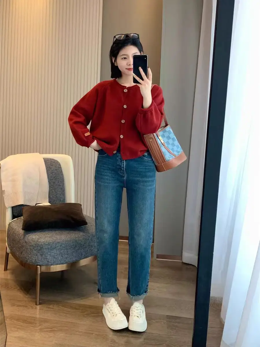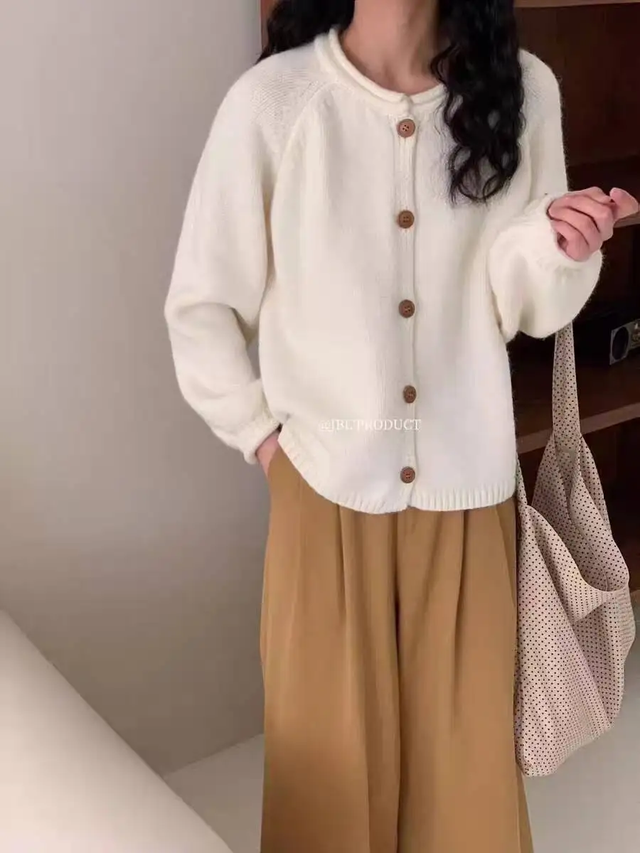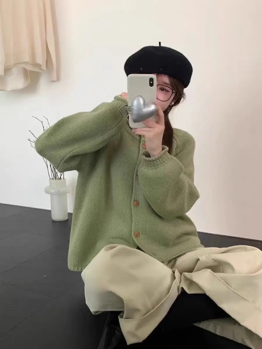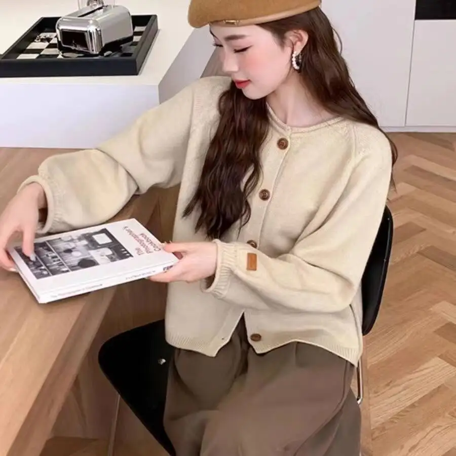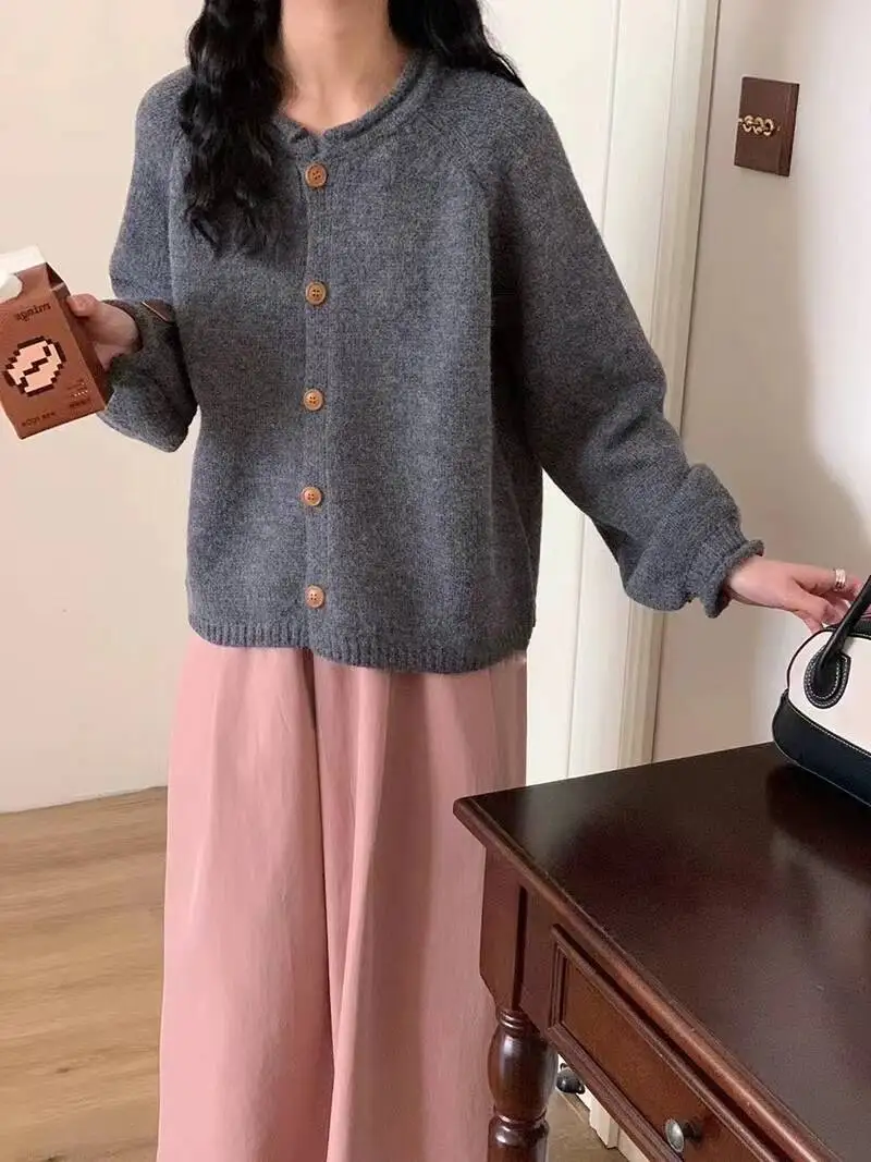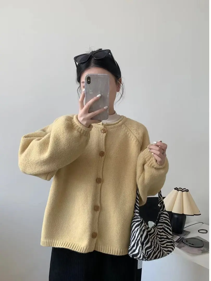 Korean Fashion O Neck Long Sleeve Cardigan Sweater Women Loose Knitted Jackets Casual Simple Retro Buttons Autumn Winter Coats