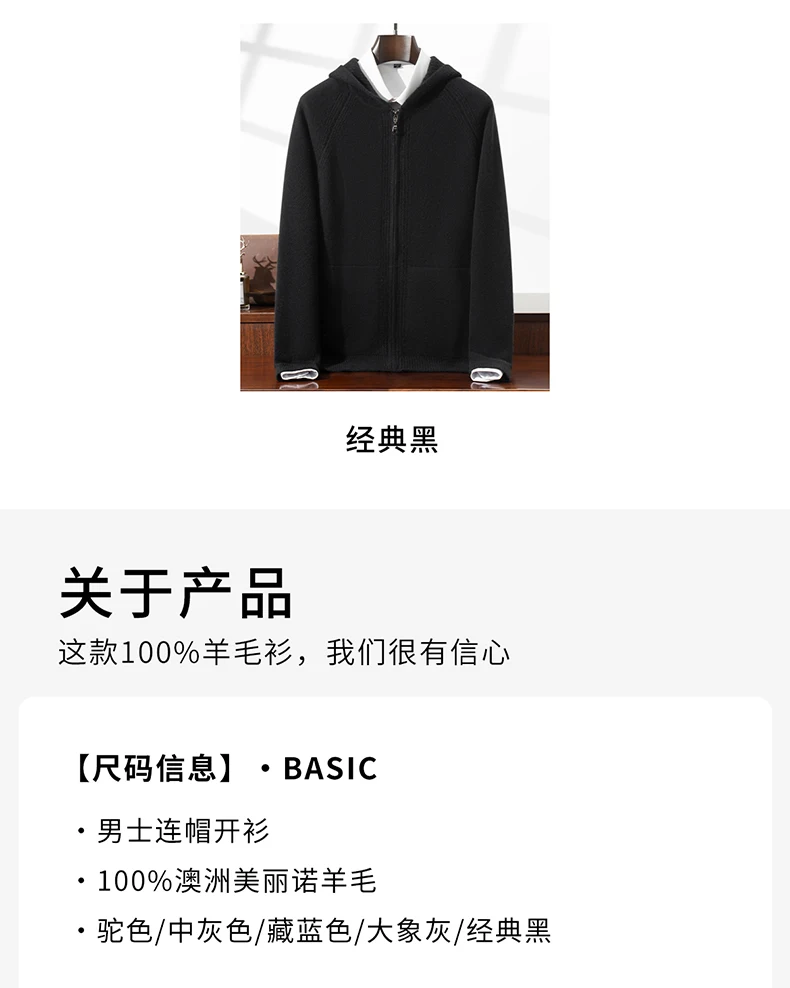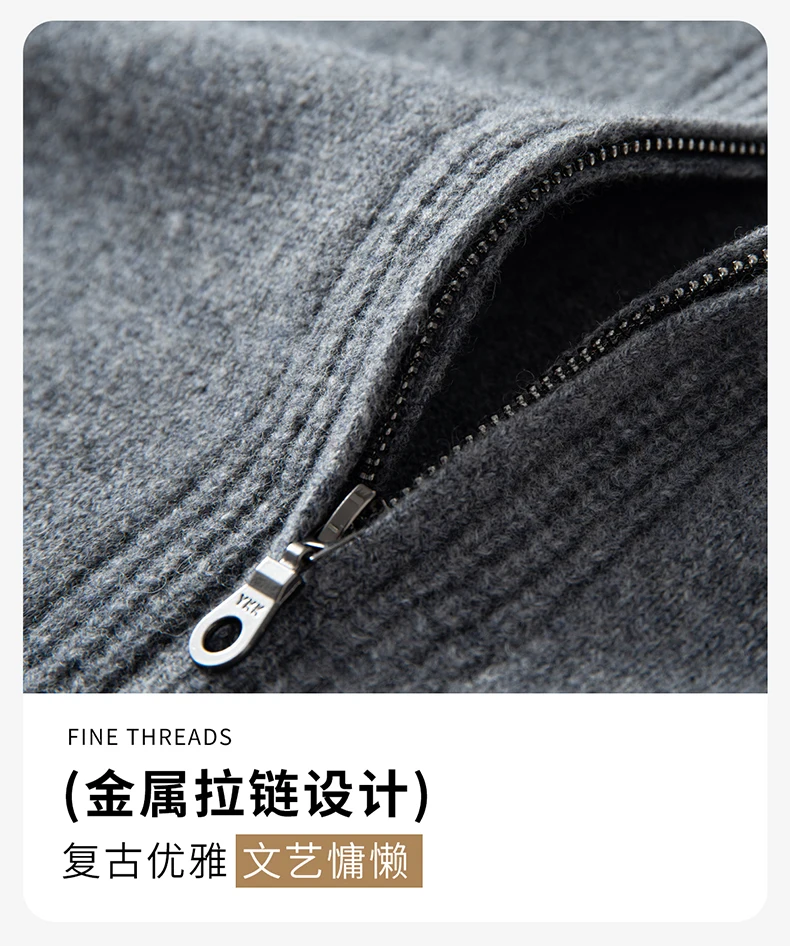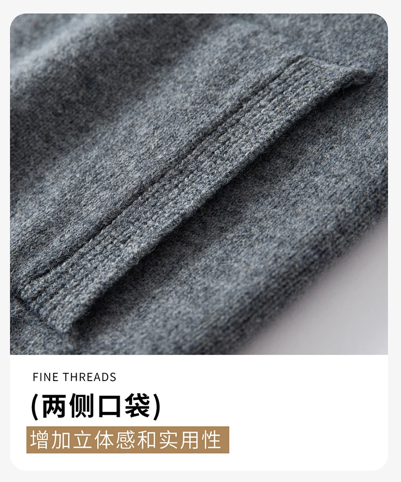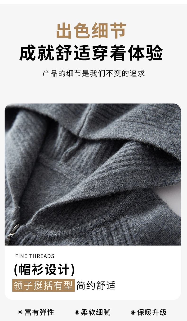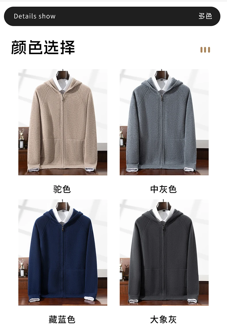 Autumn Winter New 100% Pure Wool Cardigan Men Hooded Thickened Pocket Sweater Loose Knitted Hoodie Cashmere Coat