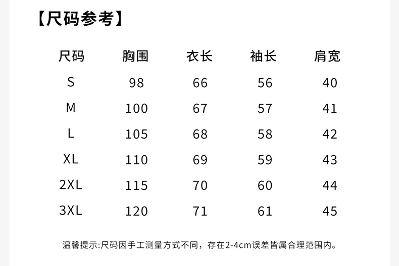 S:Bustb 98cm,Coat Length 66cm,Sleeve Length 56cm,Shoulder Width 40cm,Recommended Weight 45kg-55kg,Suitable for Height 160cm-165cm。