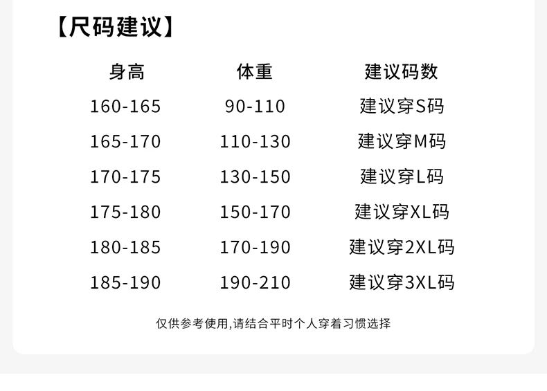 3XL:Bustb 123cm,Coat Length 71cm,Sleeve Length 61cm,Shoulder Width 45cm,Recommended Weight 95kg-105kg,Suitable for Height 185cm-190cm。