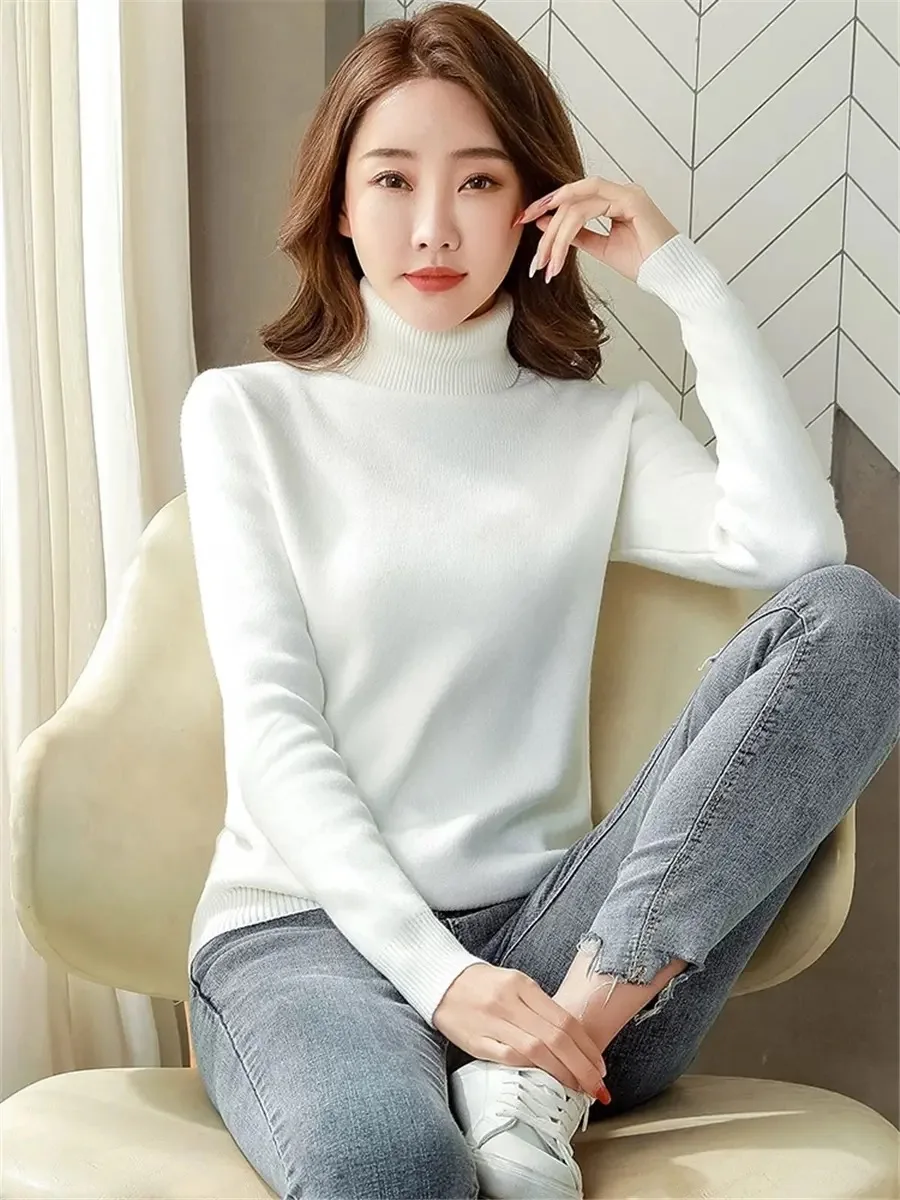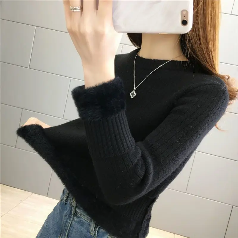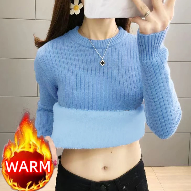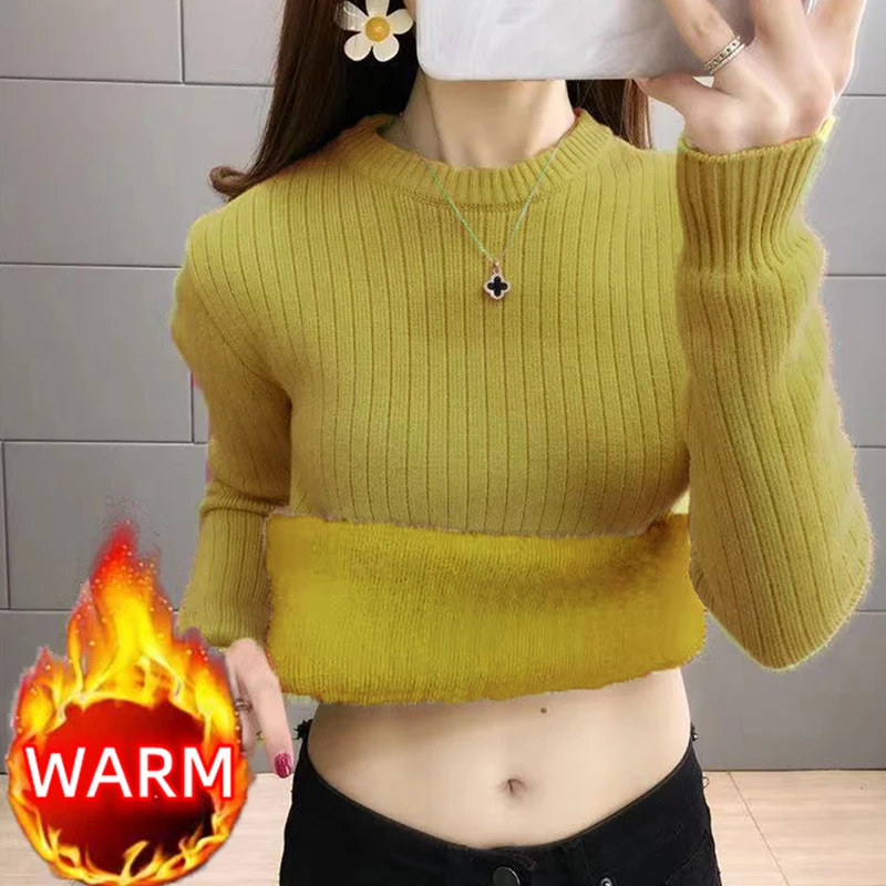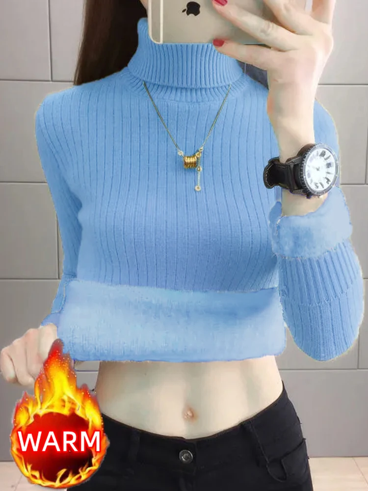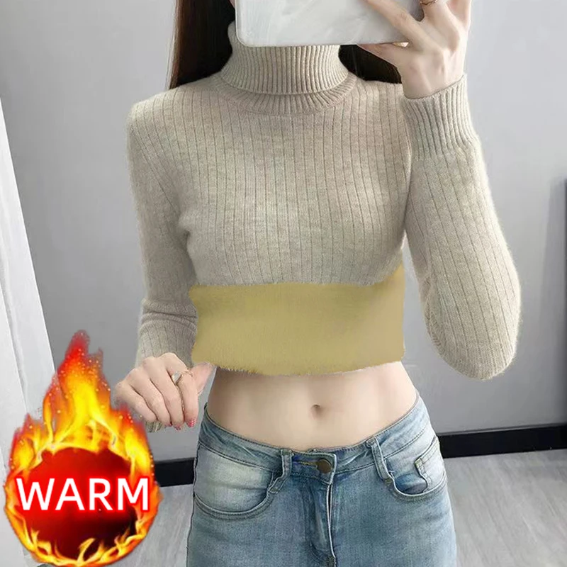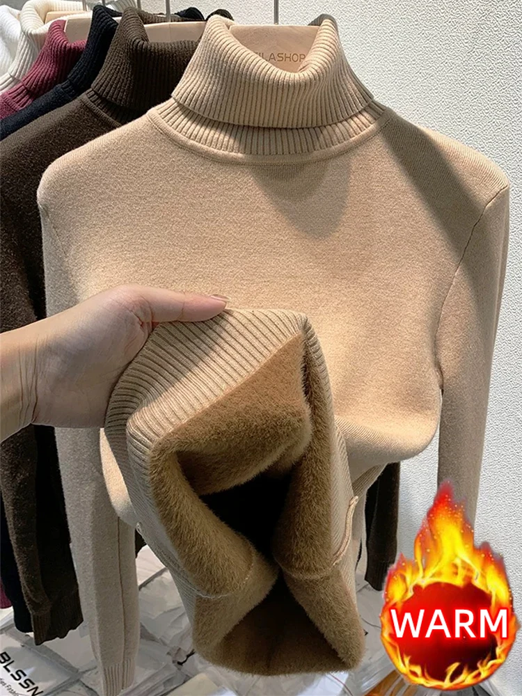 Turtleneck Winter Sweater Women Elegant Thicken Velvet Lined Warm Sueter Fleece Knitted Pullover Slim Top Jersey Knitwear Jumper