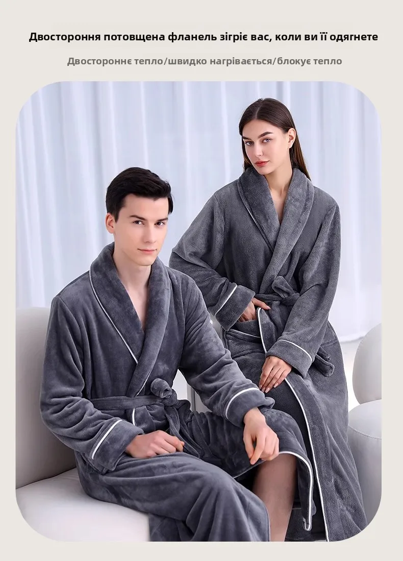 Coral Fleece Couples Robe: Men's Plus Size Winter Home Wear