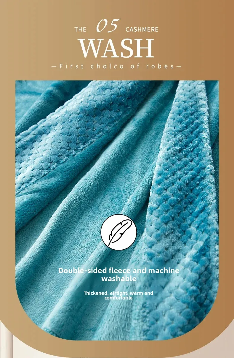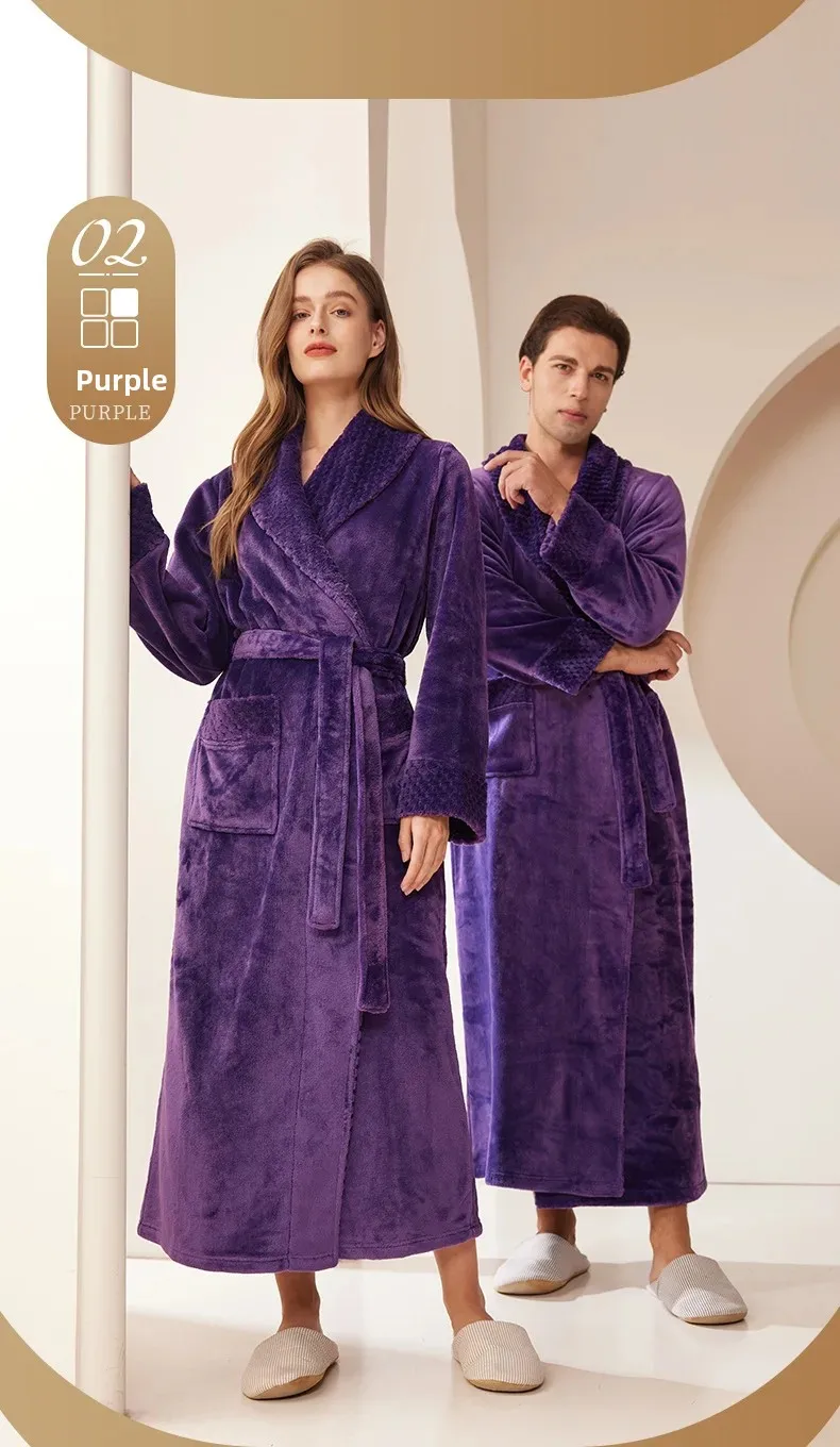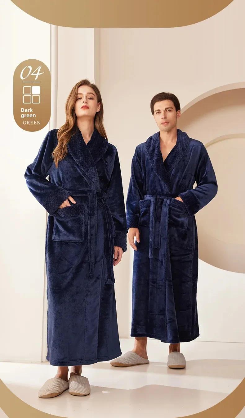 Coral Fleece Oversize Couple's Bathrobe - Autumn Winter Sleepwear