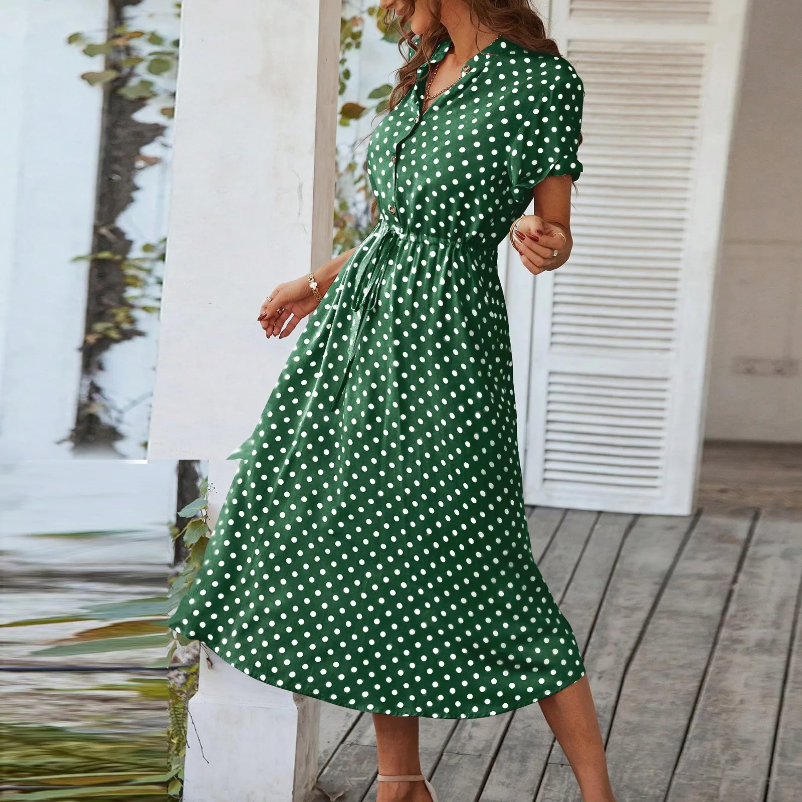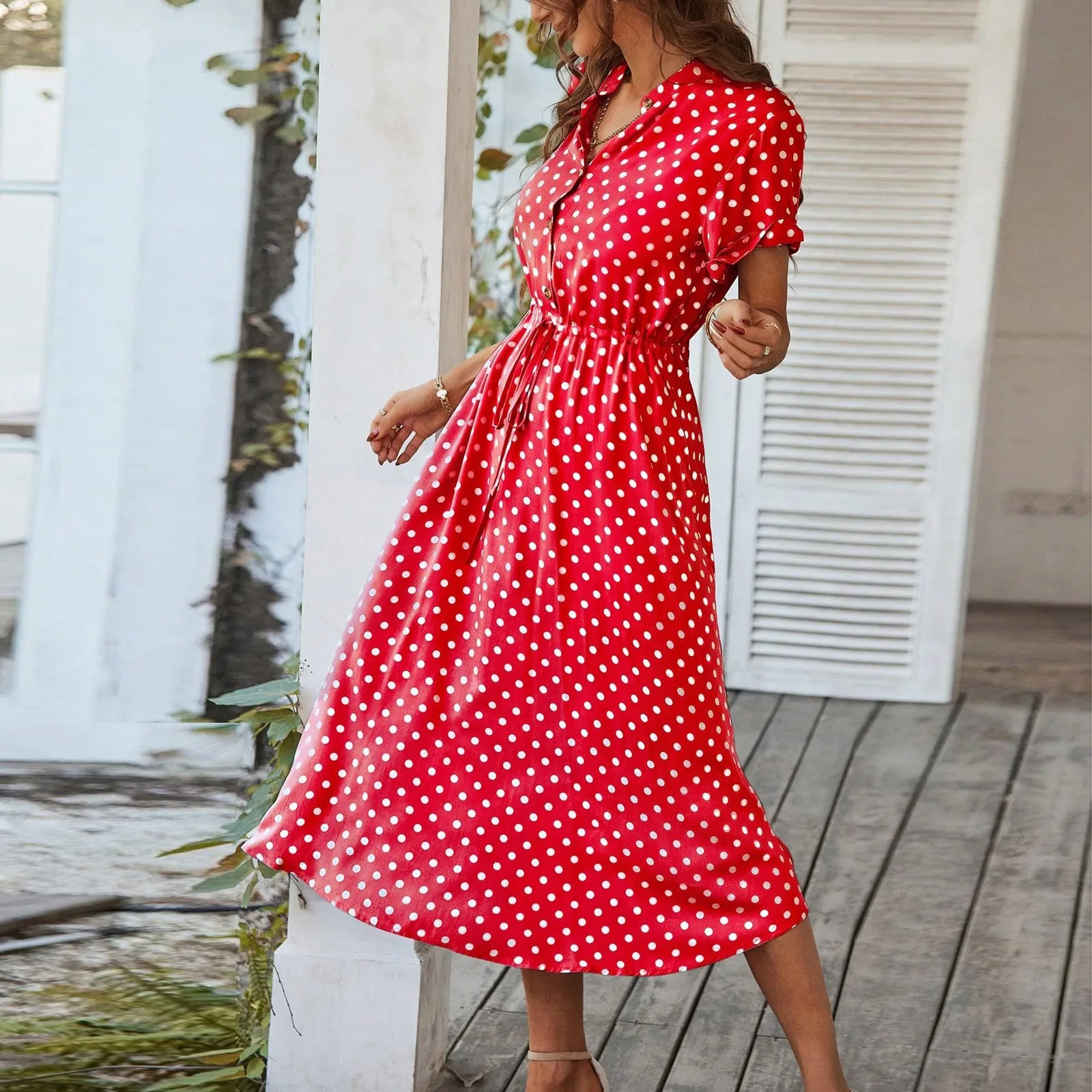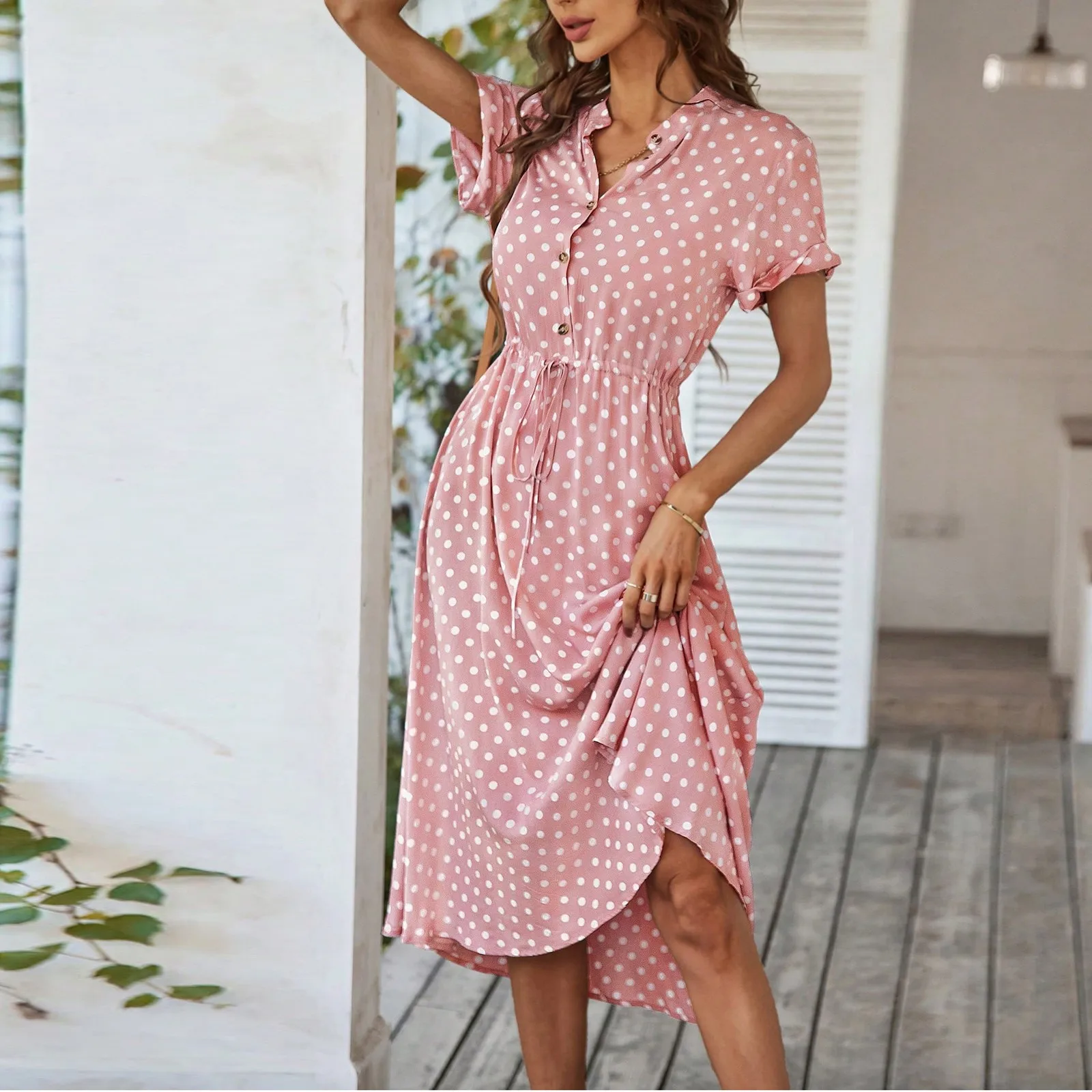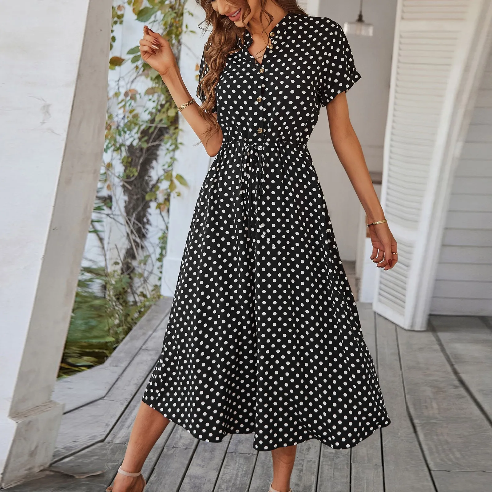 Women'S Button Printed Maxi Dress Drawstring Waist V-Neck Elegant Slim Casual Long Dress Summer Club Party Prom Dress