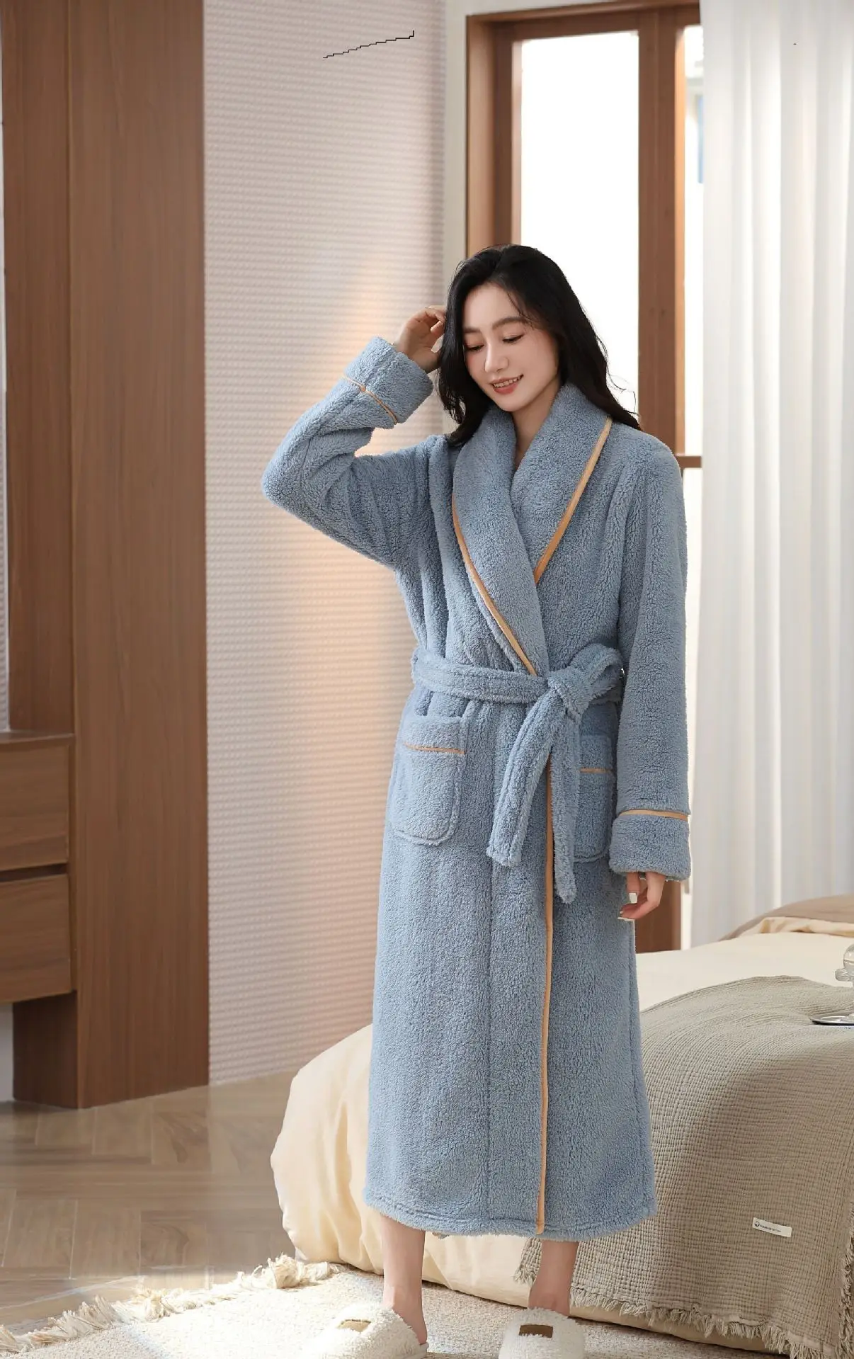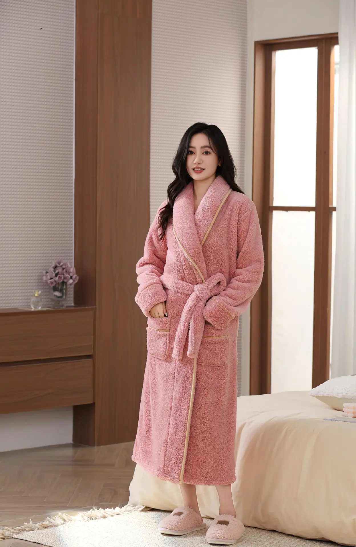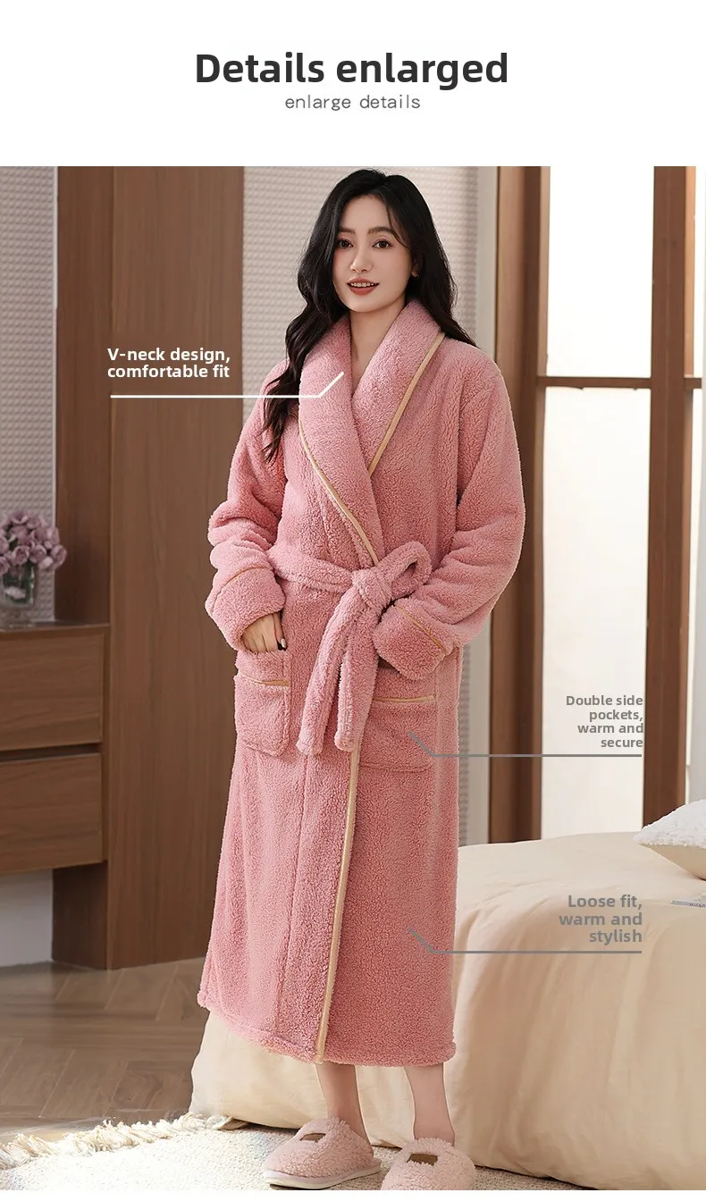 Winter Warm Coral Fleece Robe - Women's Plus Size, Cozy Home Clothing