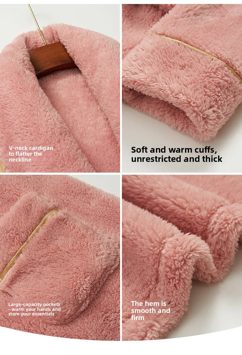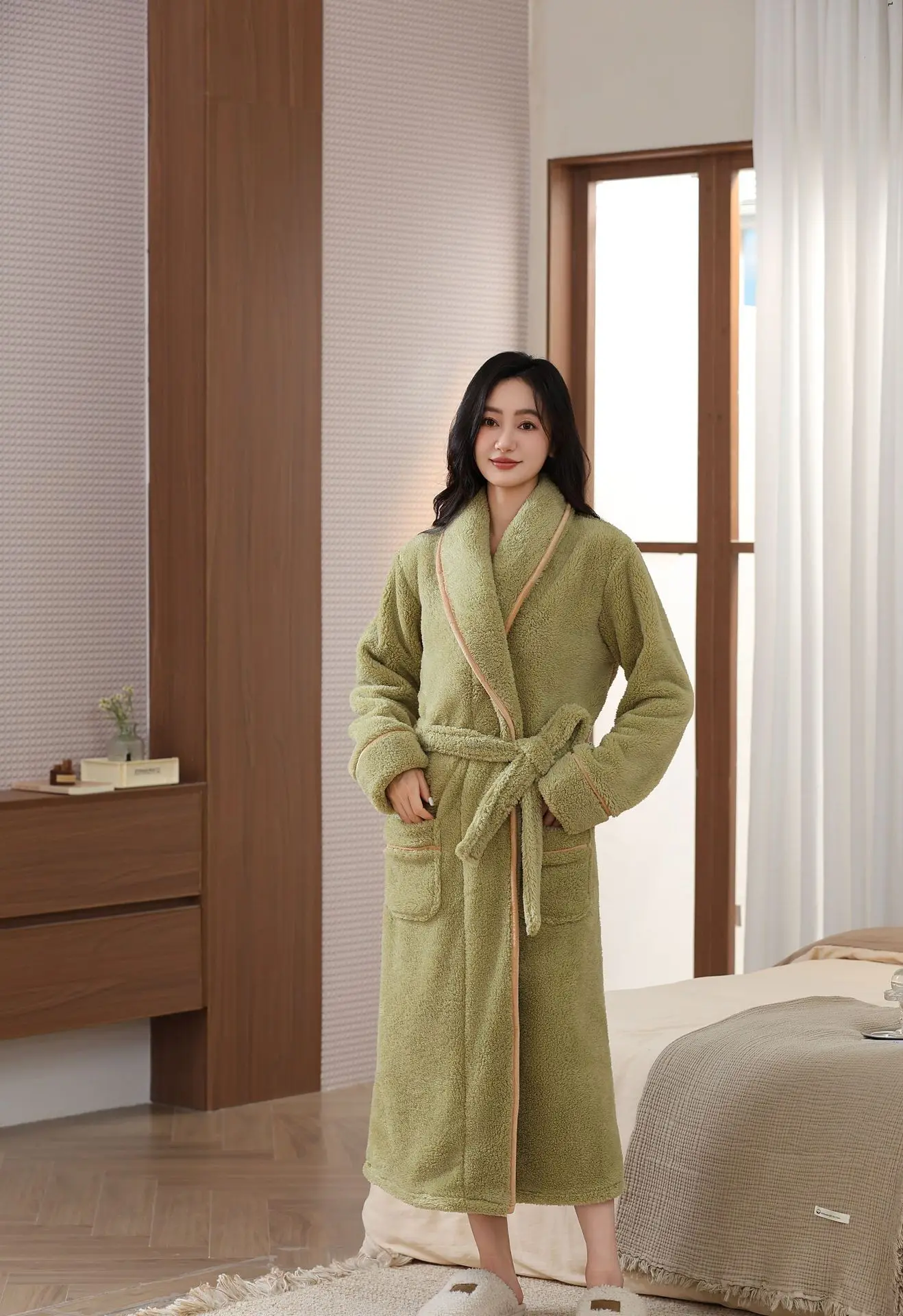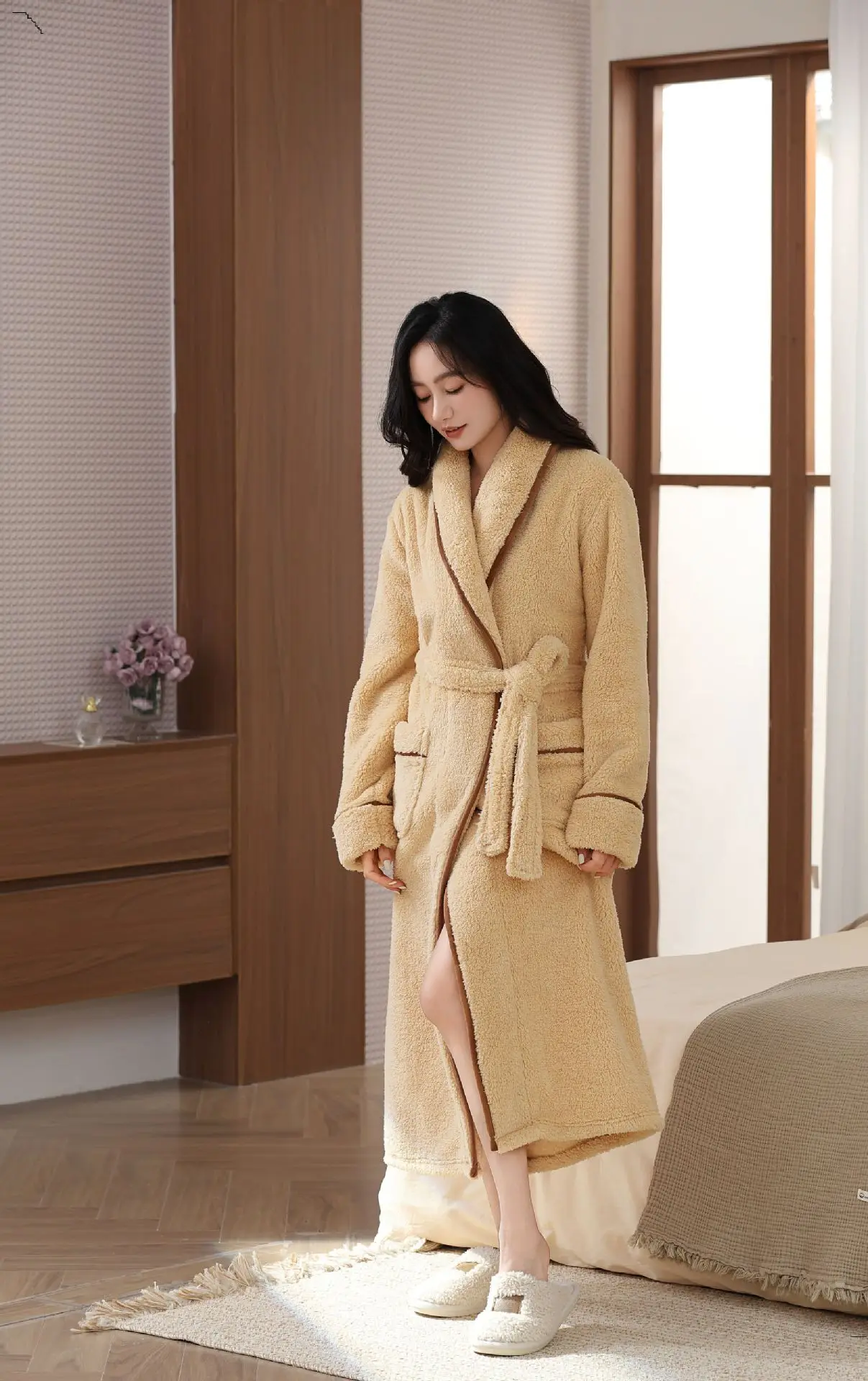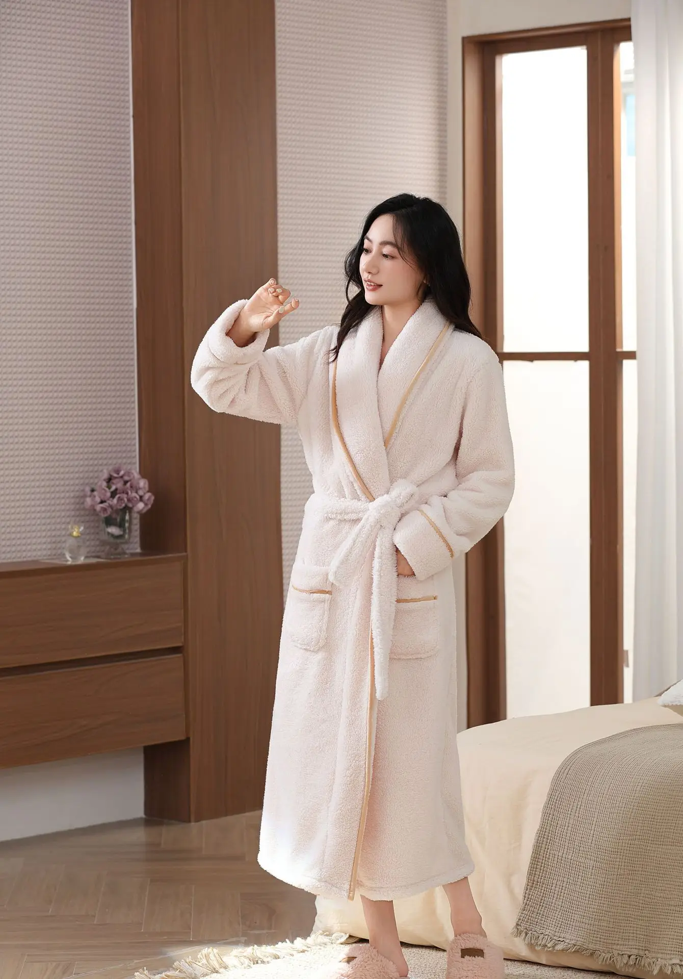 Winter Warm Coral Fleece Robe - Women's Plus Size, Cozy Home Clothing