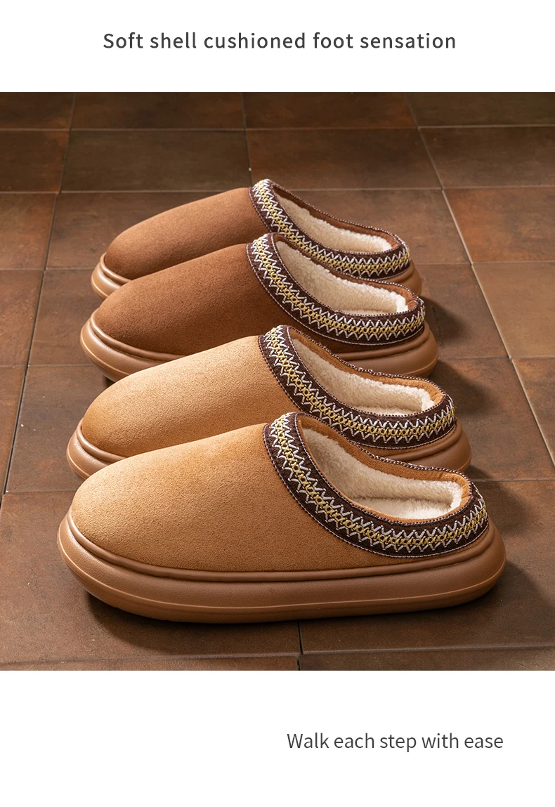 Men's Plush Slippers for Winter Thick Fuzzy Indoor House Shoes with Lightweight EVA Sole, Cozy Warm Slippers for Fall and Winter