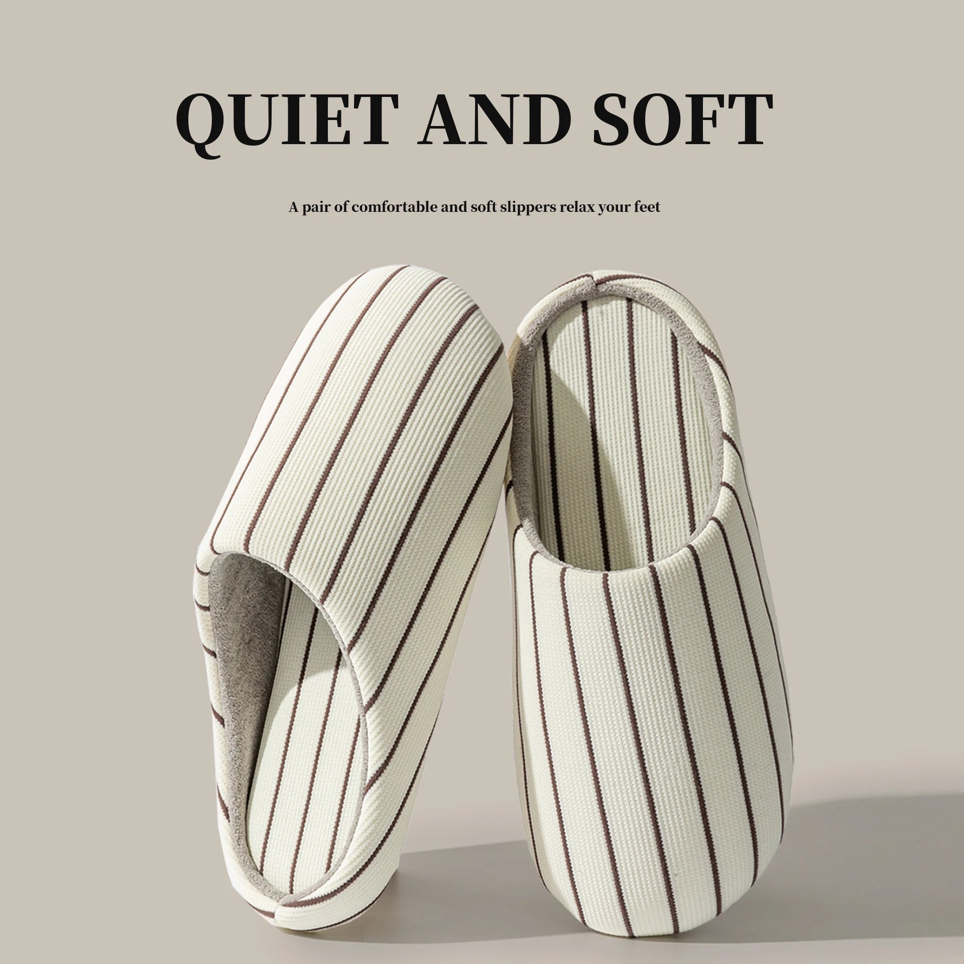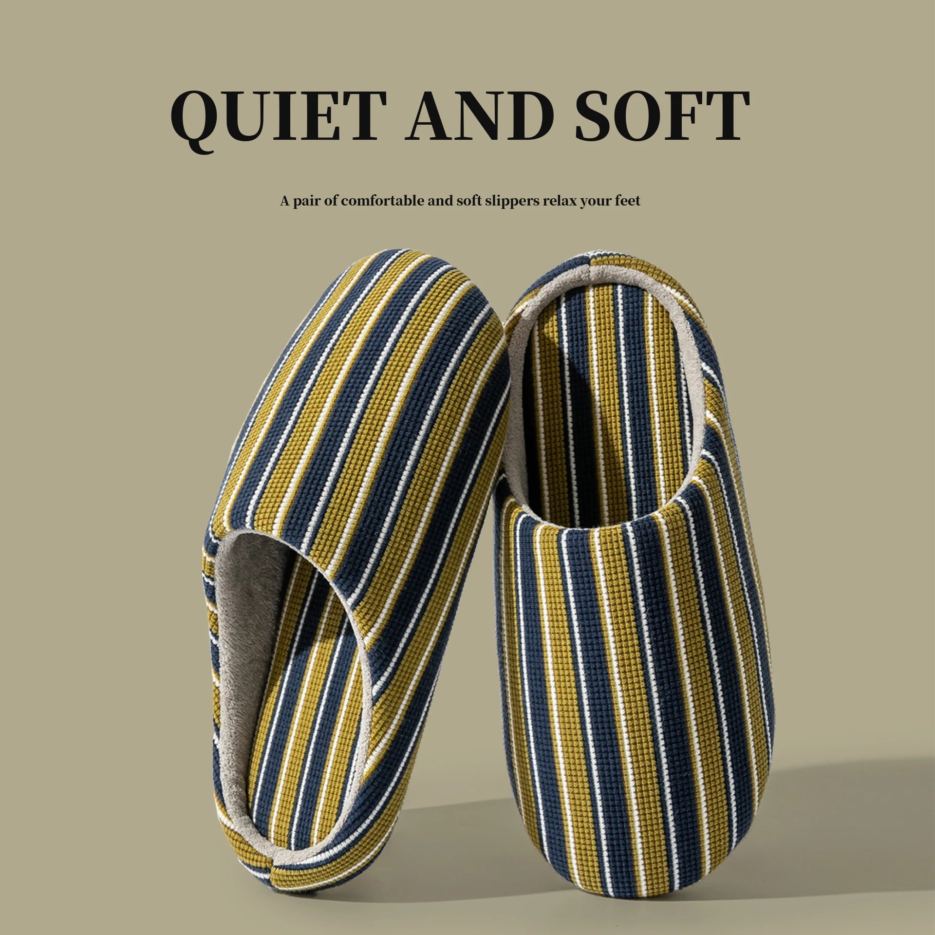 Men's Striped Slippers, Non-Slip Indoor House Shoes with Soft Flat Sole, Comfortable Bedroom Slippers for Winter and Home Use