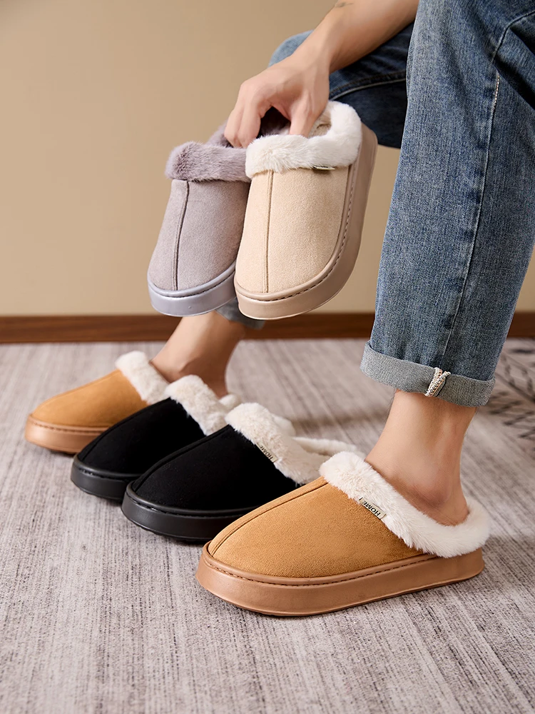 Men's thickened plush slippers indoor and outdoor non-slip soft bottom slippers comfortable warm winter models suede slippers