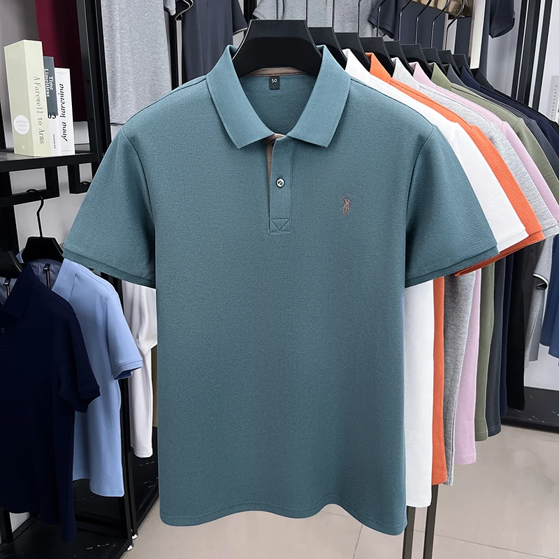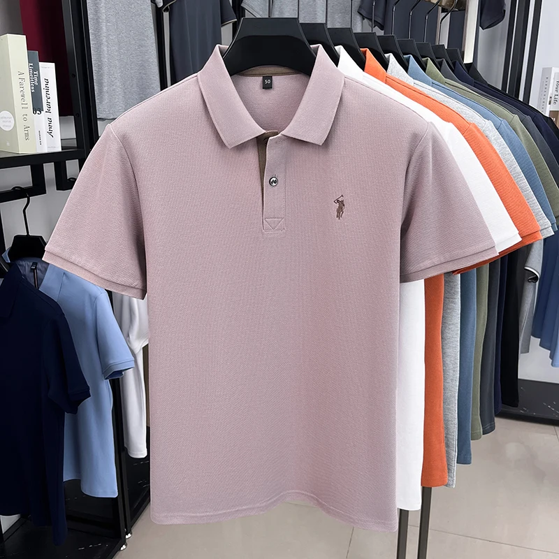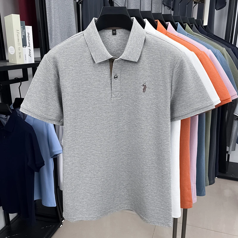 100% pure cotton high-end brand men's short sleeve polo shirt summer fashion customization horse embroidery classic Paul T-shirt