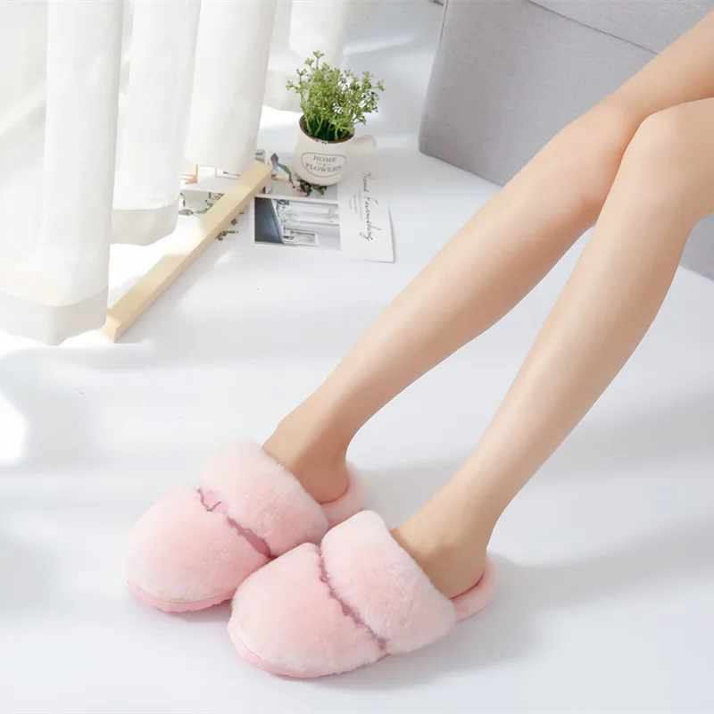 Cozy Sheepskin Winter Slippers for Women - Indoor Fur Wool Slip-Ons