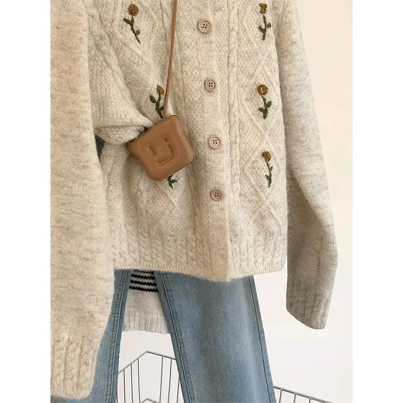 Embroidered Sweater Jacket for Women in Spring and Autumn 2025 New Hot Style Loose and Versatile Knitted Cardigan Sweater
