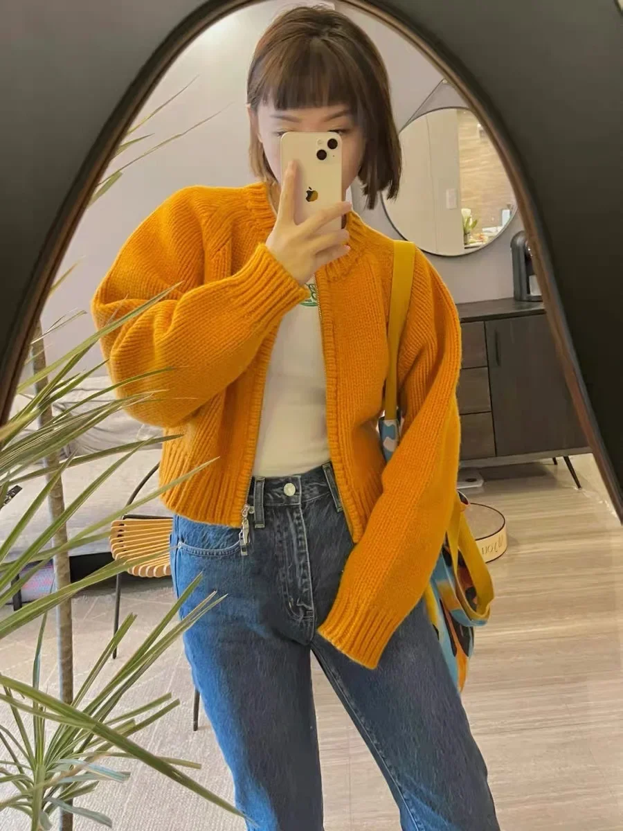 • Korean Style Design :This cardigan features a trendy Korean style design, with a double zipper and avocado green color, making it a stylish addition to any wardrobe.