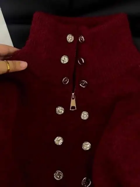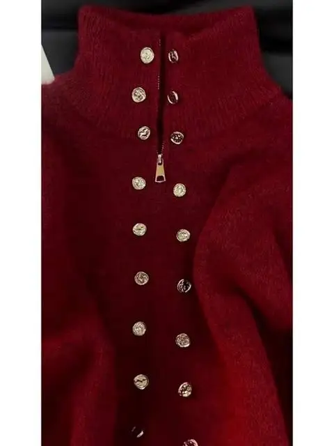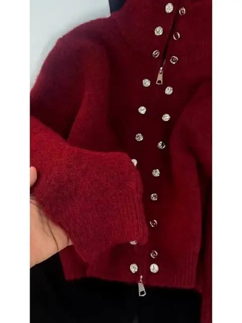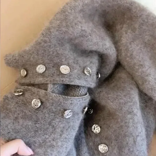 Luxury Fluffy Knitted Cardigan Sweater Design Double Breasted Sweater Coat Women Autumn High-end Lazy Zipper 2000s Y2k Knit Top