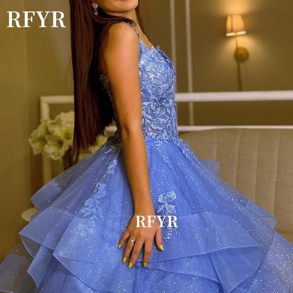 RFYR A Line Evening Dresses Lace Prom Dress Multilayers Elegant Princess Gown Applique Party Gown فساتين مناسبة رسمية Customized