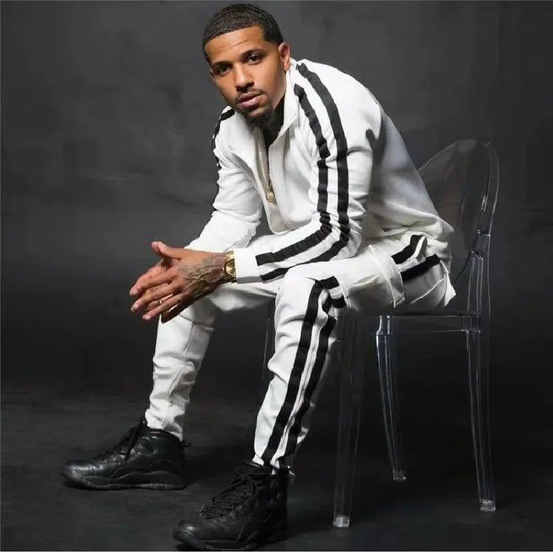 Spring and Autumn Men's Cardigan Striped Stand up Collar Sports Set Outdoor Jogging Cycling Mountaineering Two Piece Set