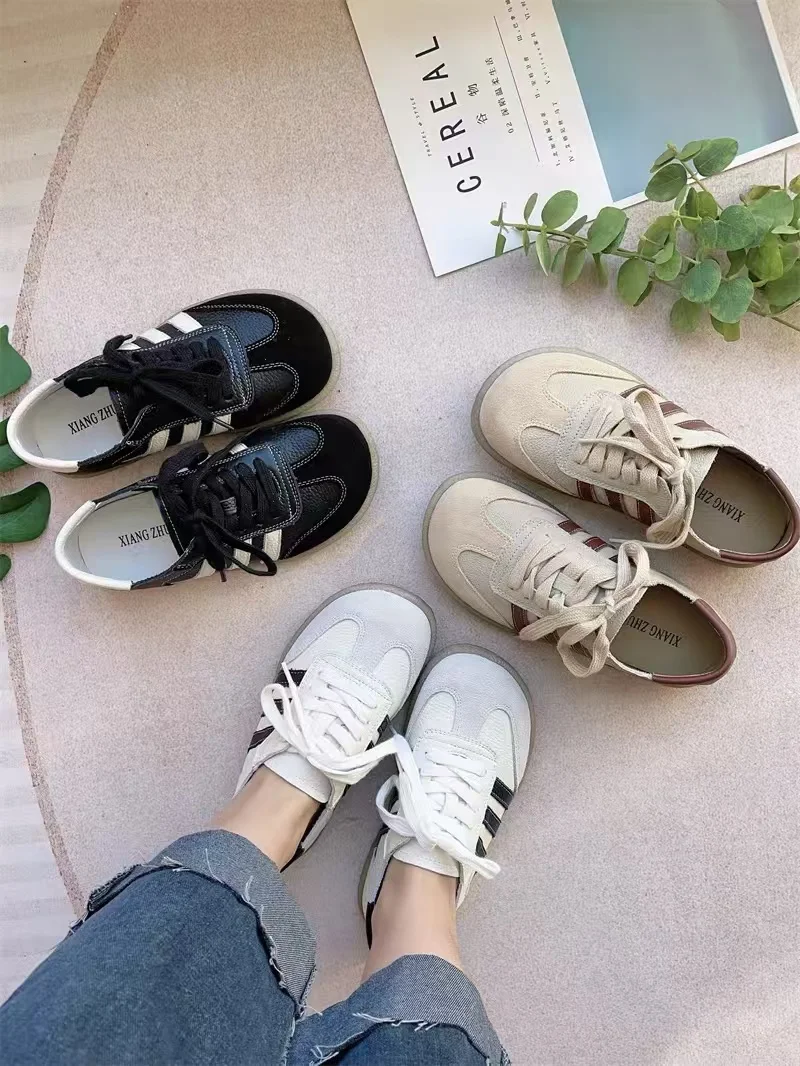 Careaymade-Genuine Leather women's shoes,soft sole comfortable casual single shoes,cowhide ugly cute lace up small white shoes