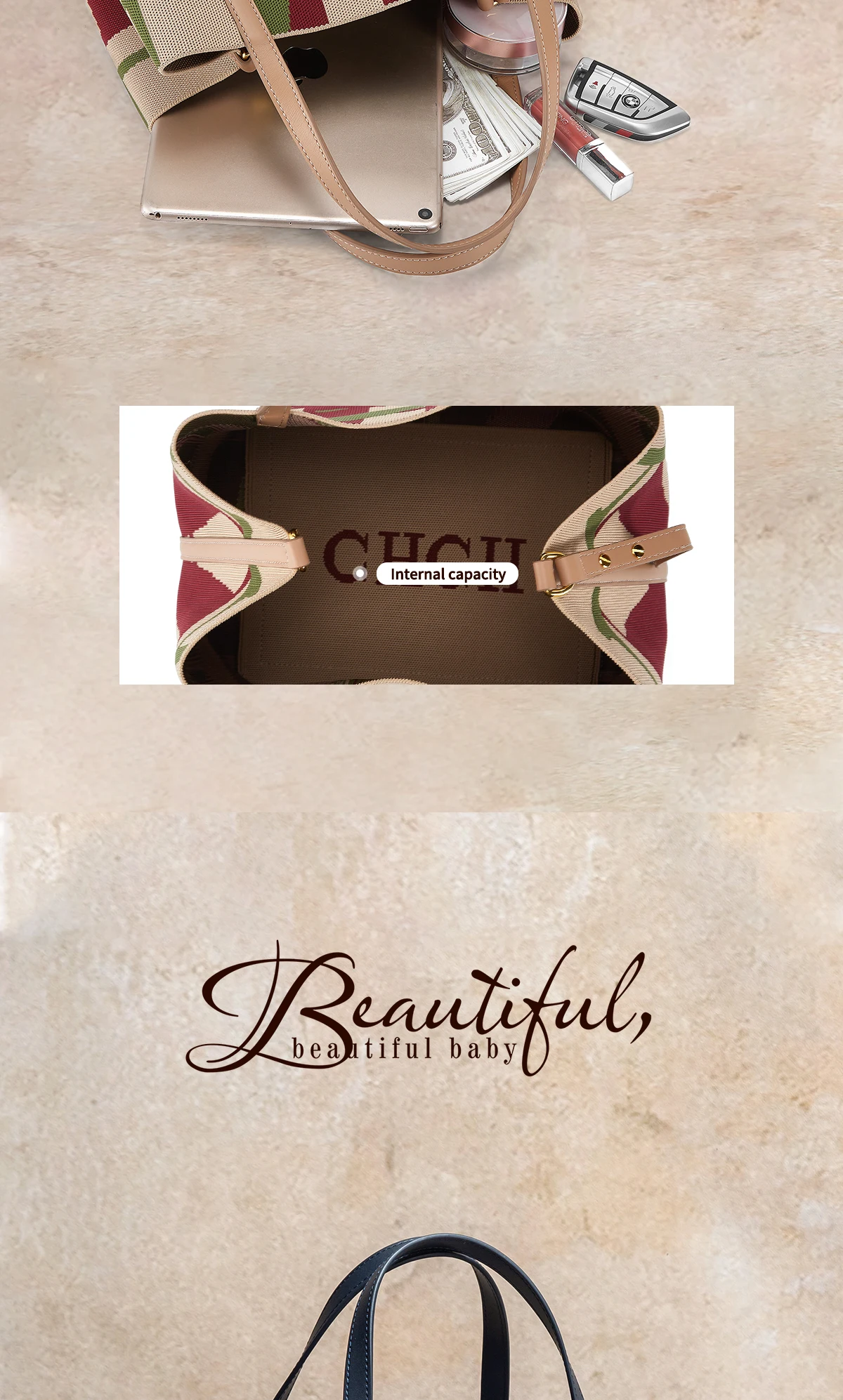 CH Shopping Bag Mommy Summer New Simple Large Capacity Women's Handbag 27 * 12 * 27cm
