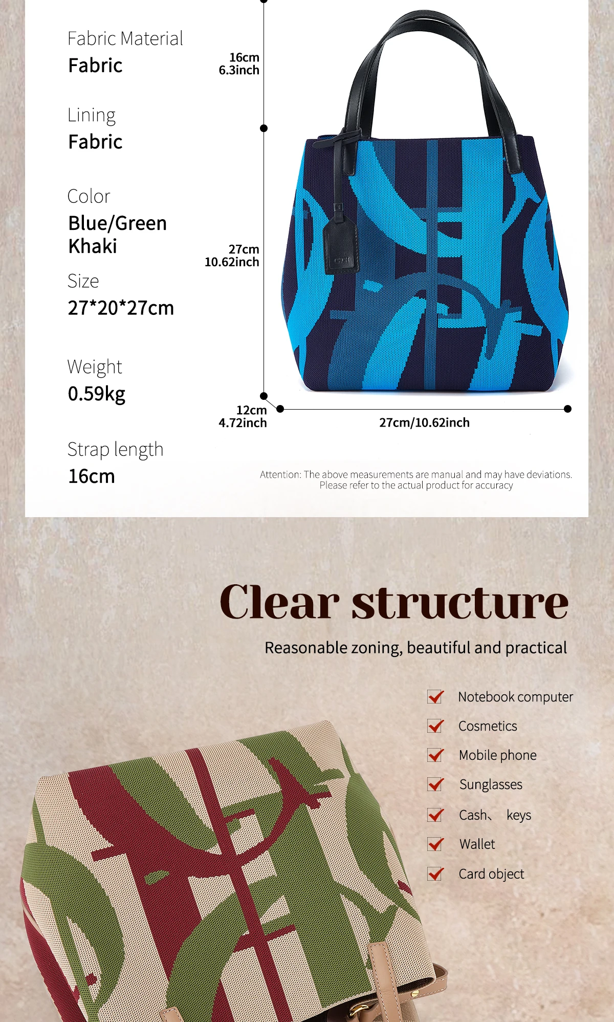 CHCH Shopping Bag Mommy Summer New Simple Large Capacity Women's Handbag 27 * 12 * 27cm