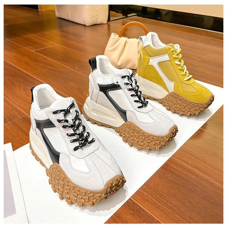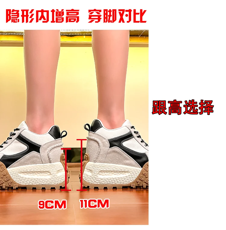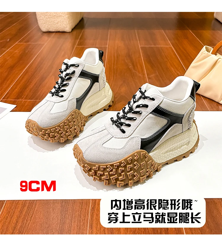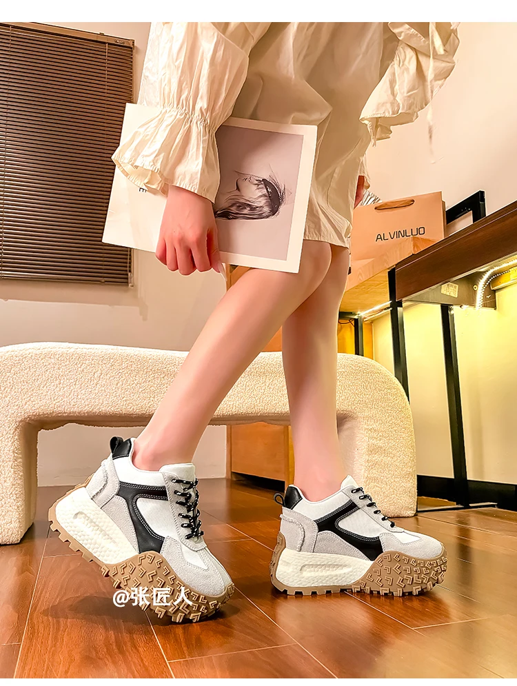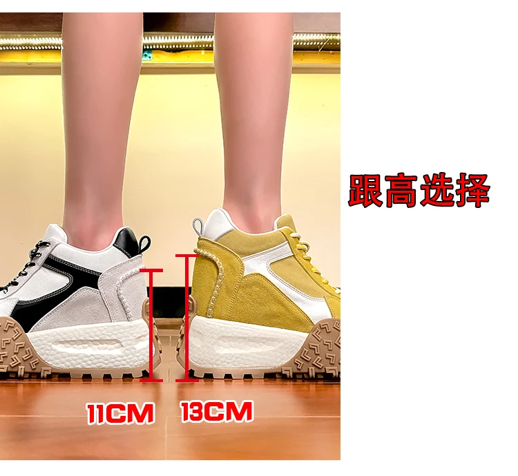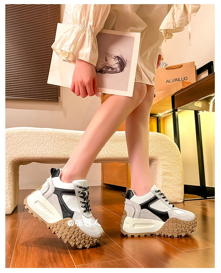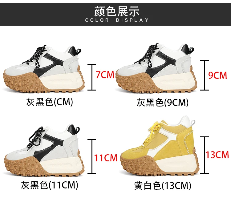 13cm Platform Elevator Shoes Women Chunky Sneakers Casual Shoes 9cm Increasing Shoes Genuine Leather Luxury Design Sneaker
