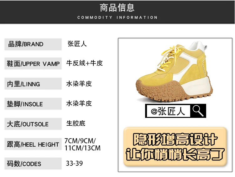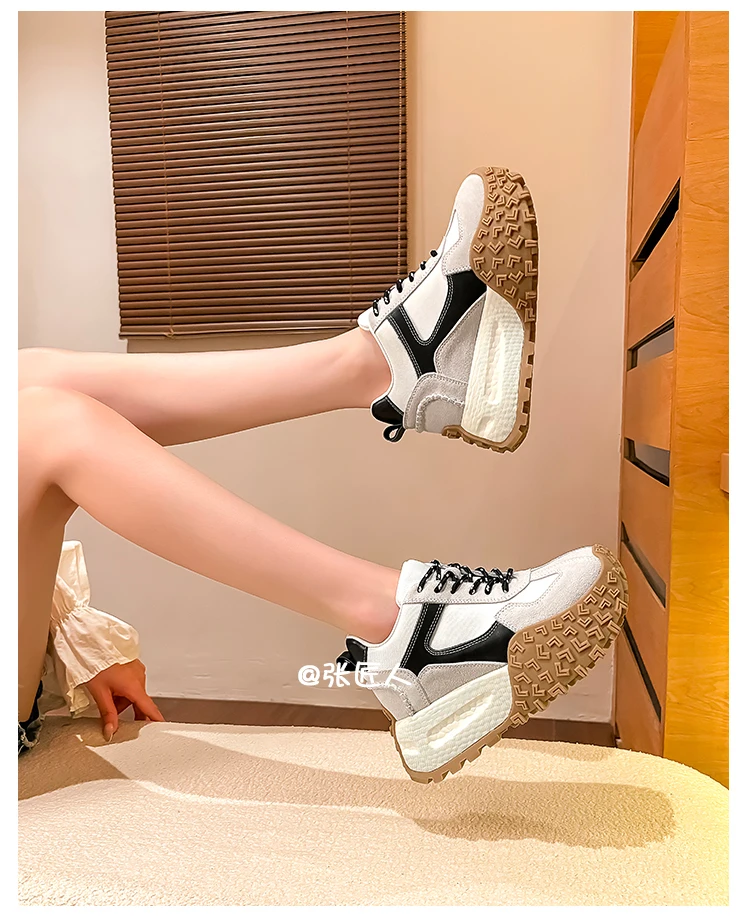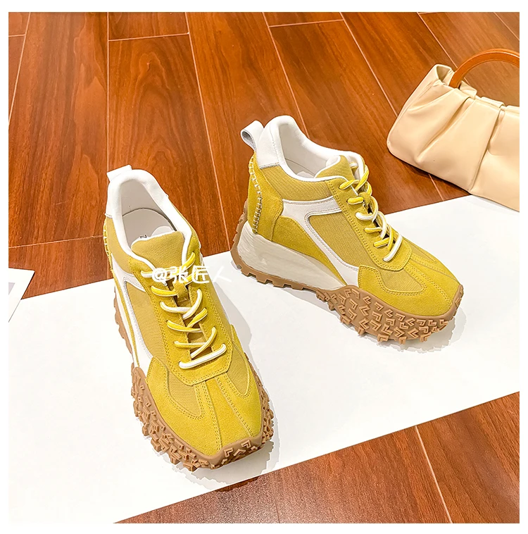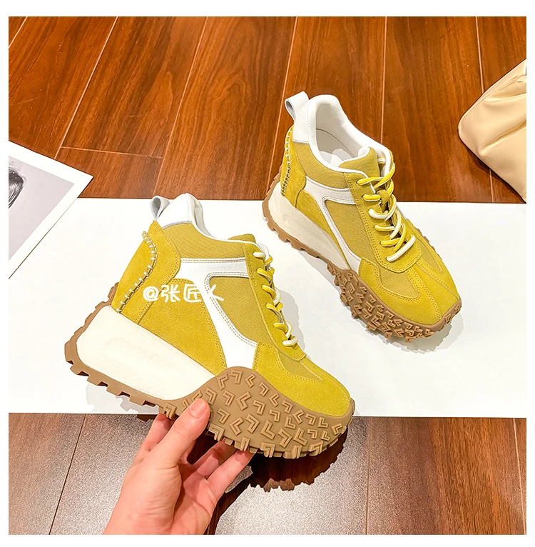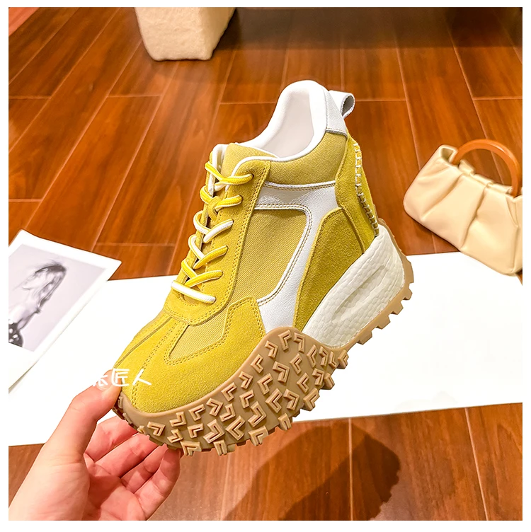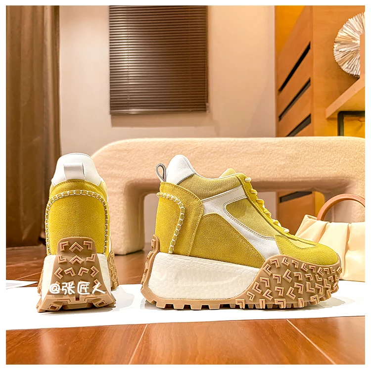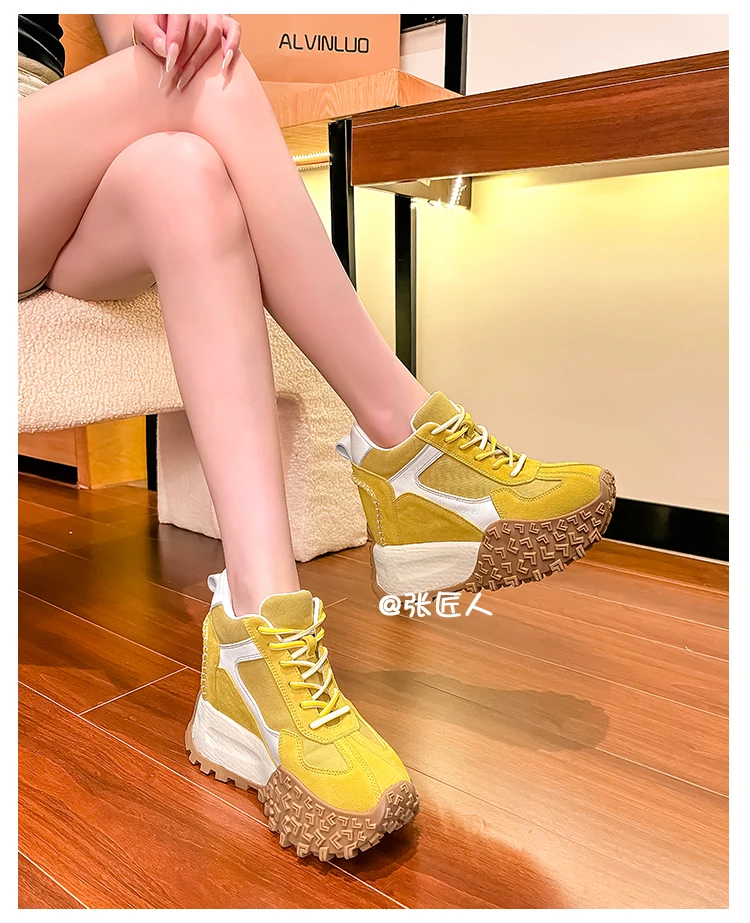 13cm Platform Elevator Shoes Women Chunky Sneakers Casual Shoes 9cm Increasing Shoes Genuine Leather Luxury Design Sneaker