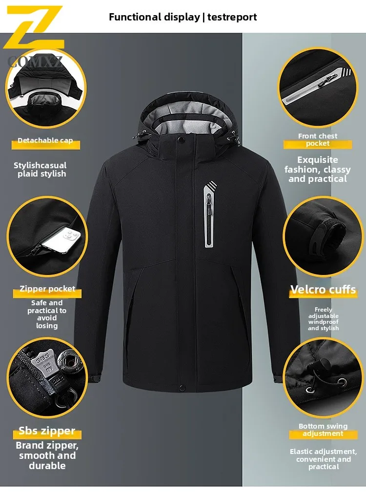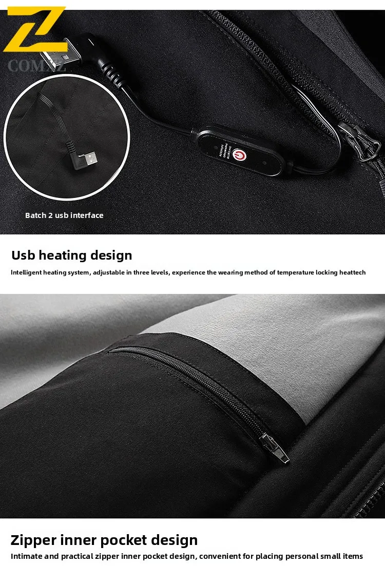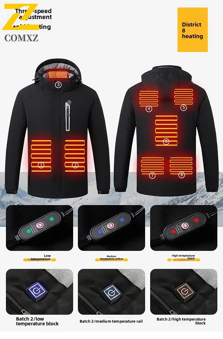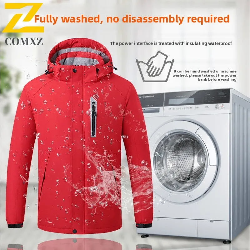 2025 Smart USB Heated Jacket Men Warm Long Coat Winter Sports Outdoor Fleece-Lined Windproof Ski Suit Electric Heating Apparel