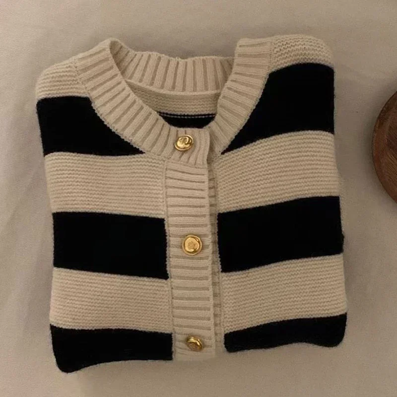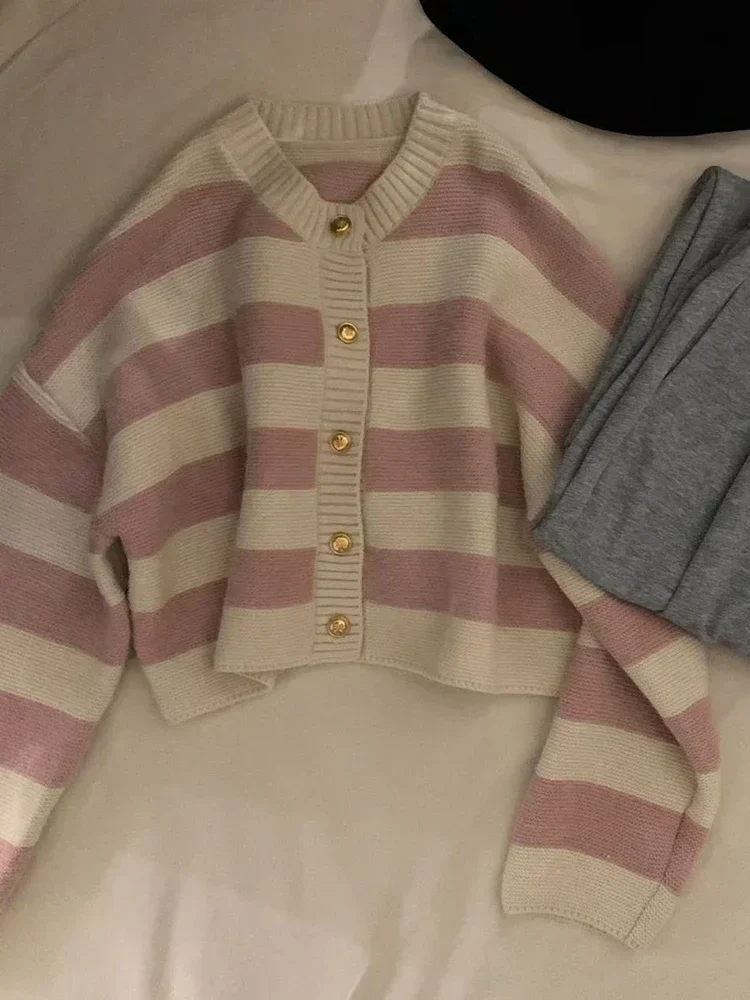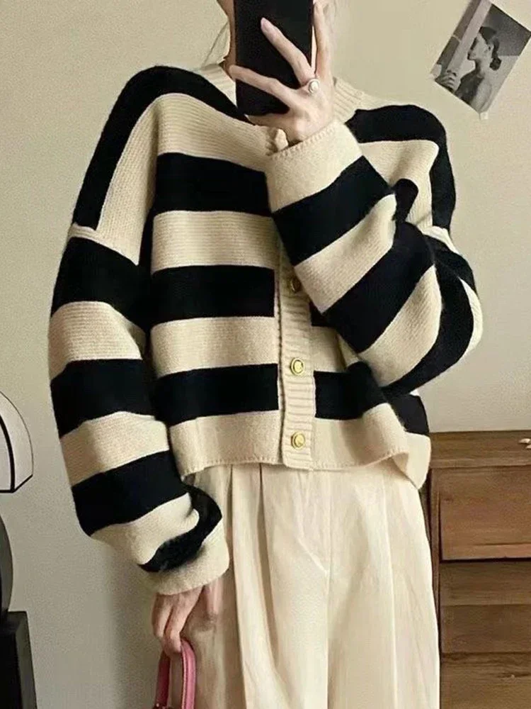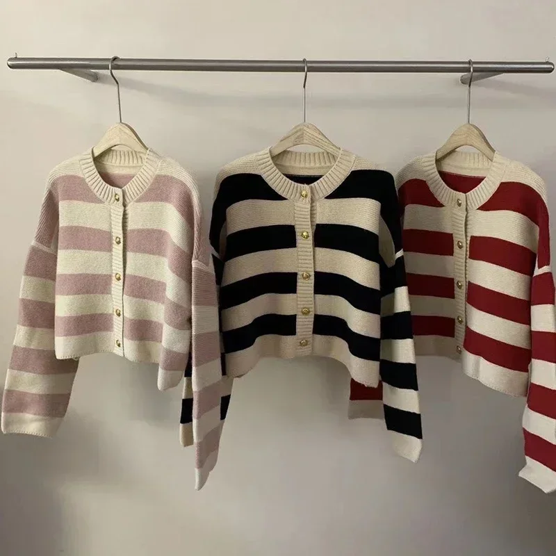 Korean fashion sweater cardigan women knitted striped sweater autumn winter long sleeve loose short cardigans female casual tops
